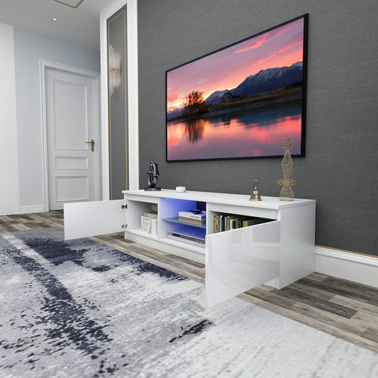 130CM Width White Modern TV Stand High Gloss Door Matt Cabinet Unit LED Light
