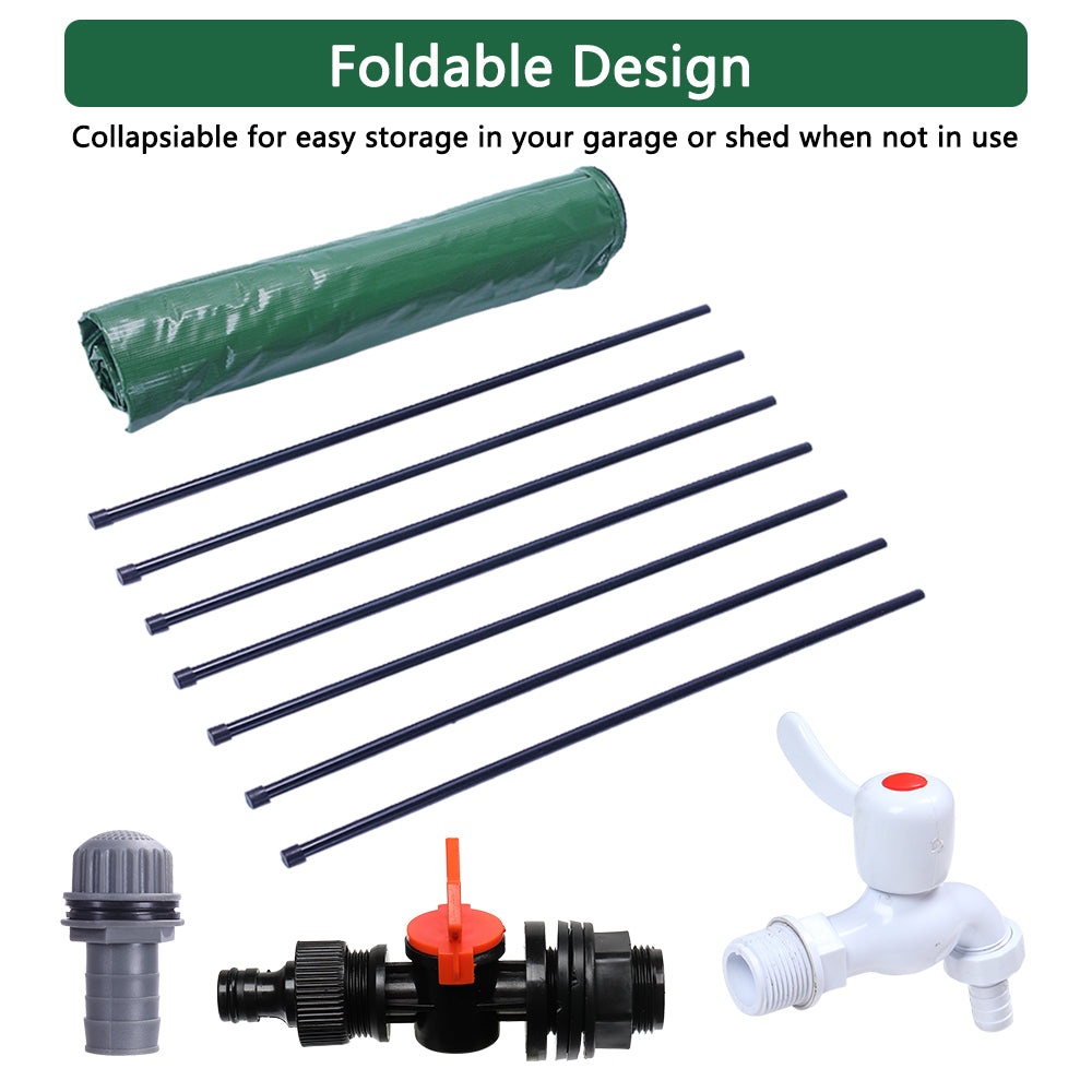 Rain water is ideal for a multitude of applications including biodynamic and organic vegetable gardens, planter beds for botanicals, indoor tropical plants like ferns and orchids, and for cleaning household windows. Our 100 Gallon Folding Rain Barrel will be an indispensable tool for you to collect rain water. Simply place the rain barrel beneath a down spout to capture natural rain water. This rain barrel features a foldable barrel design which makes it easy to store and carry. Besides, its green surface naturally fits in with your backyard sight. Zippered mesh cover allows water to collect while blocking leaves and debris, it is also easy to remove for cleaning and maintenance. Connect a hose to the tap on the bottom or scoop from the top with a watering can. Don't hesitate, come and buy one!
