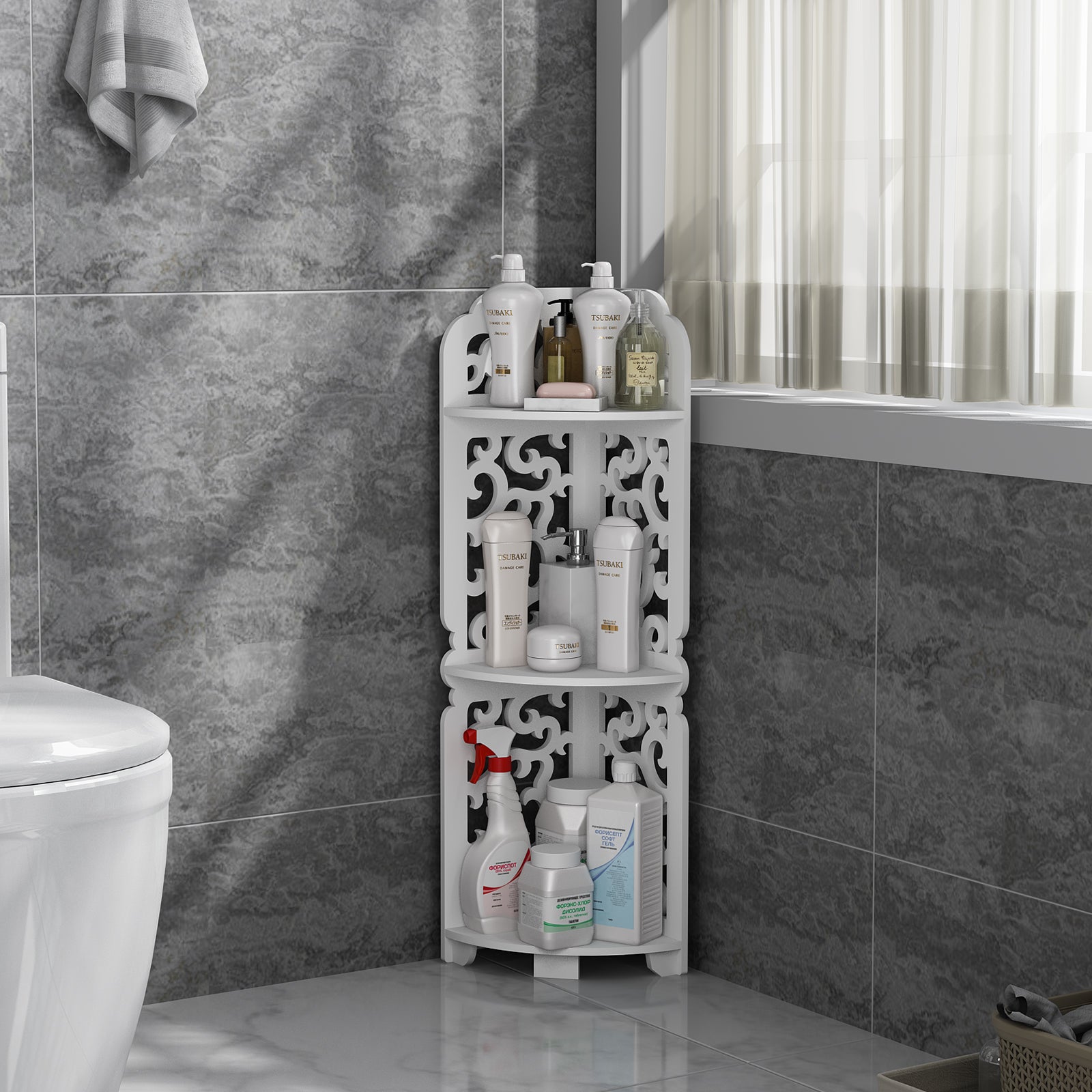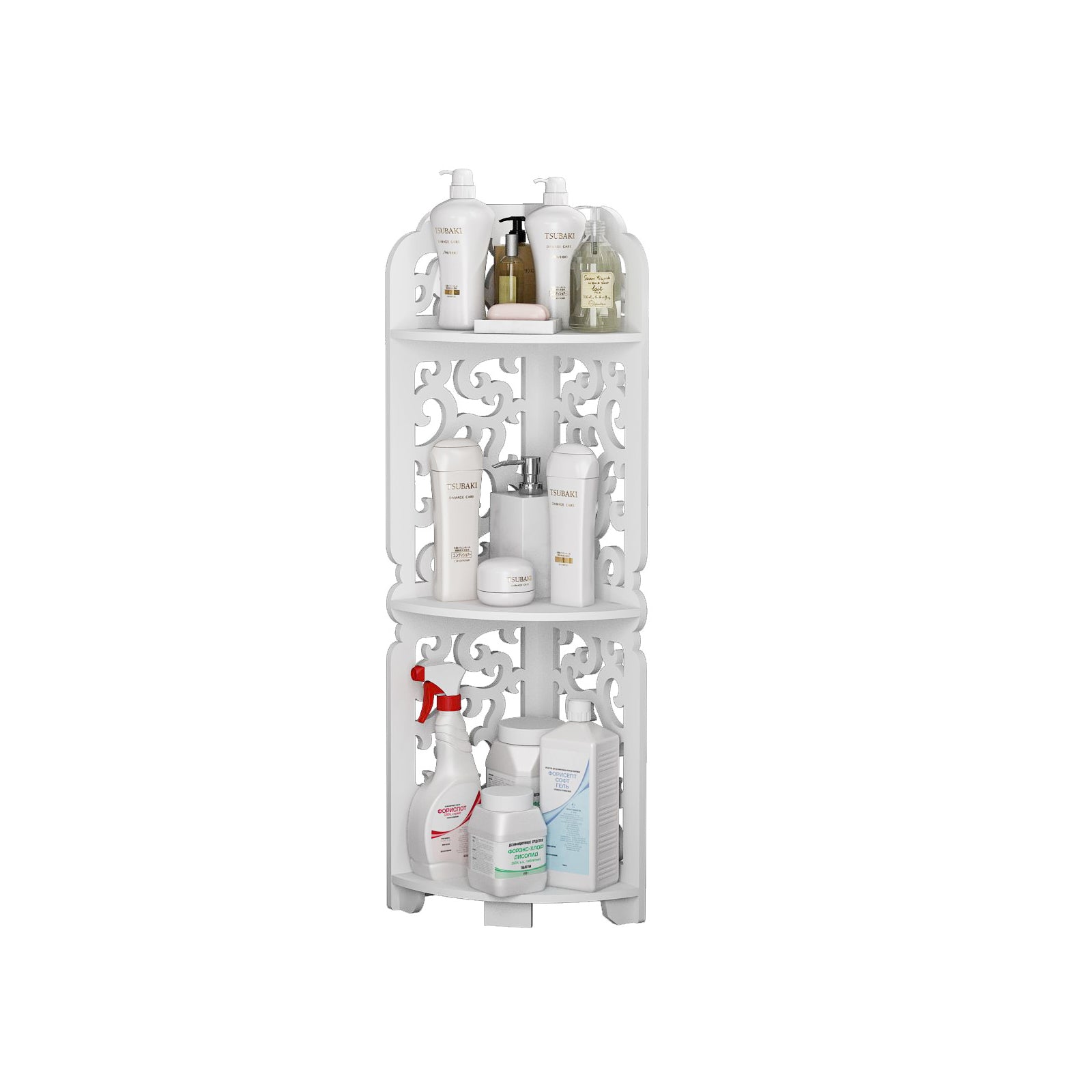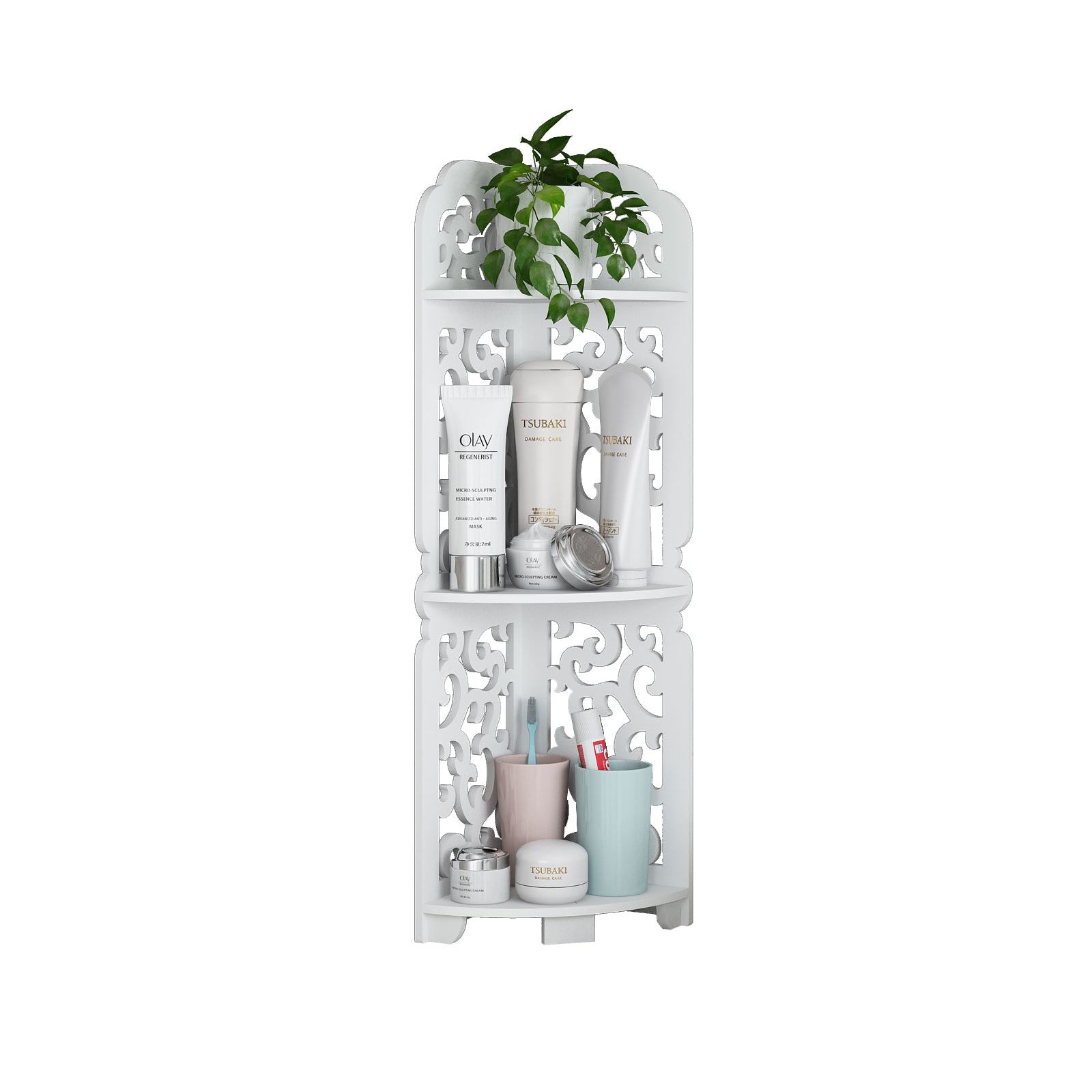 1. Manufactured from WPB (Wooden Plastic Board) this shelf has been carved to give a filigree look, painted in white