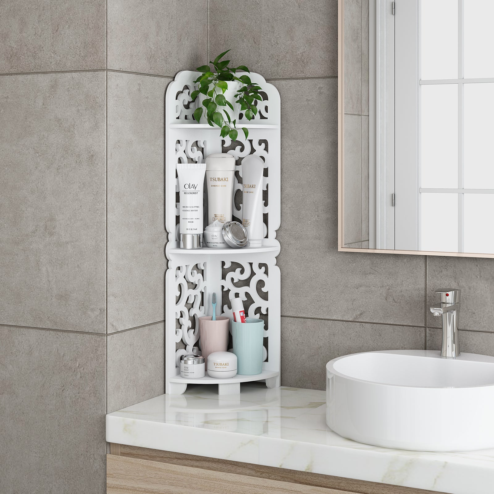 3 Tier White Wooden Corner Shelf Unit Home Bathroom Storage Unit Furniture