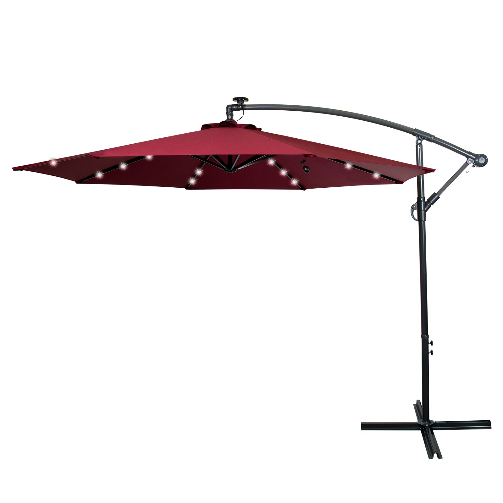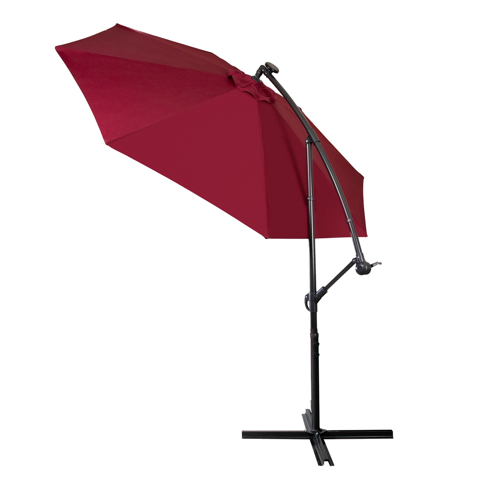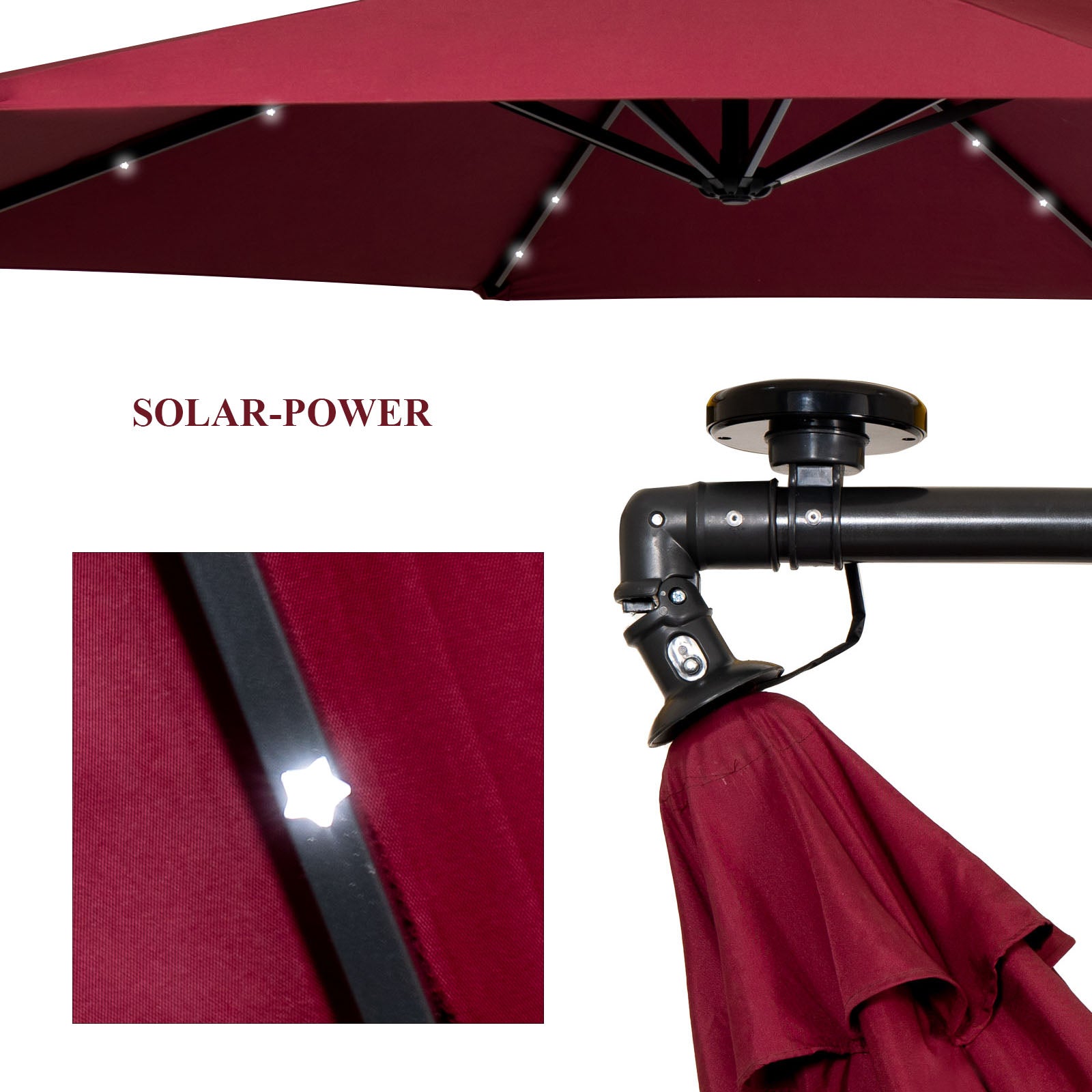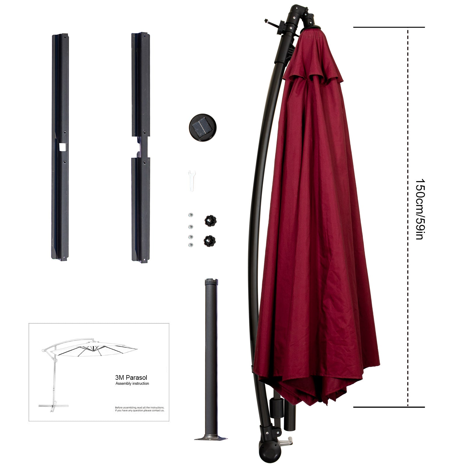 3M Garden Parasol with Solar-Powered LED Lights, Patio Umbrella with 8 Sturdy Ribs, Outdoor Sunshade Canopy with Crank and Tilt Mechanism UV Protection, Patio and Balcony Red