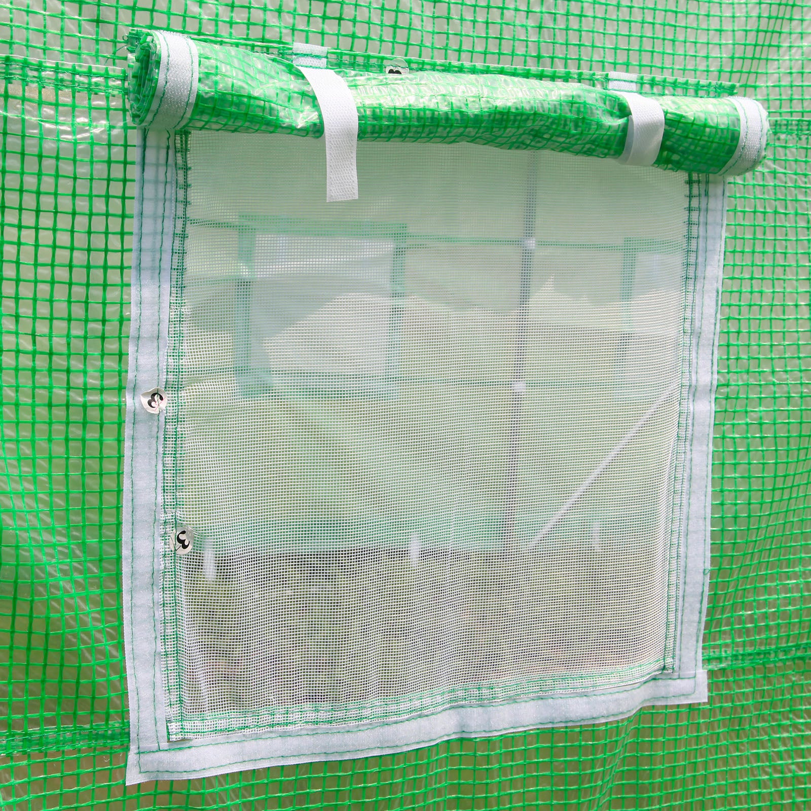 - Powder coated steel frame provide and middle rails provide additional stability for this greenhouse.