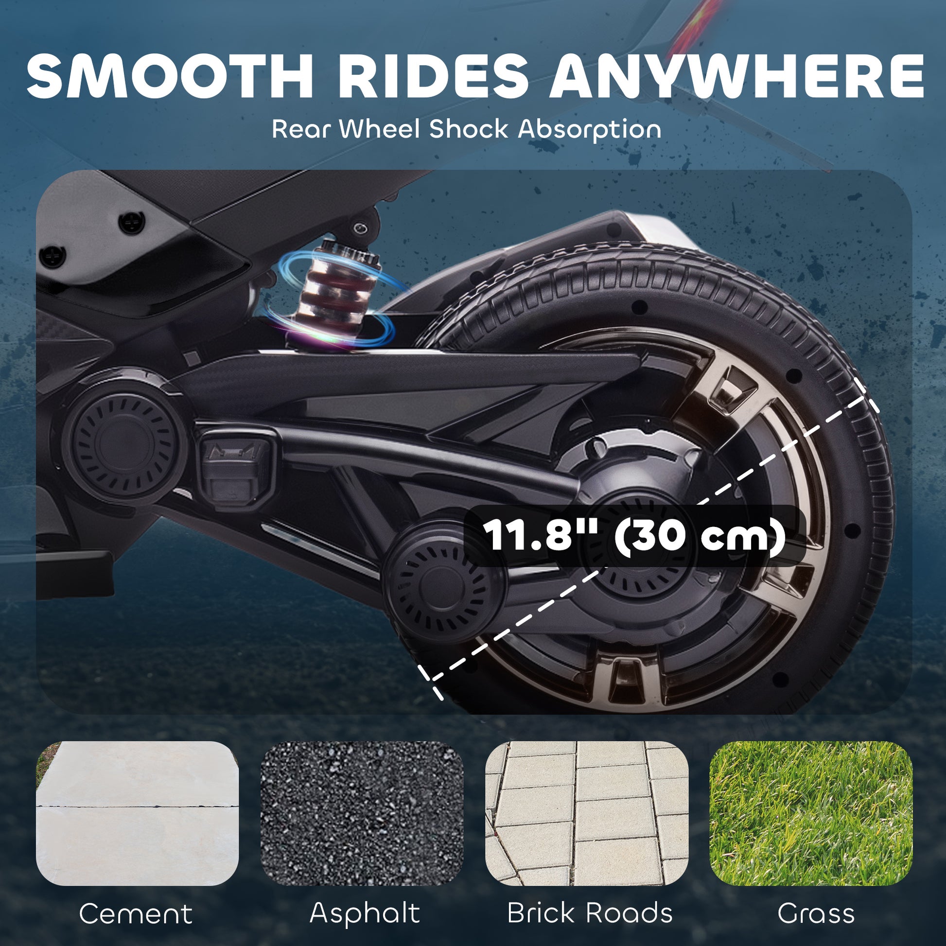 AIYAPLAY 12V Kids Electric Ride On Car with 3 Wheeler, MP3 Player, Horn, 2 Speeds, LED Lights for Boys & Girls Ages 3-8, Black