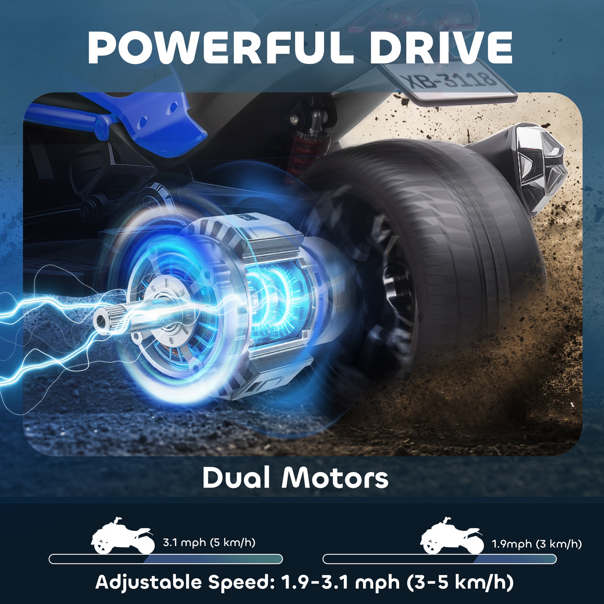 AIYAPLAY 12V Kids Electric Ride On Car with 3 Wheeler, MP3 Player, Horn, 2 Speeds, LED Lights for Boys & Girls Ages 3-8, Blue