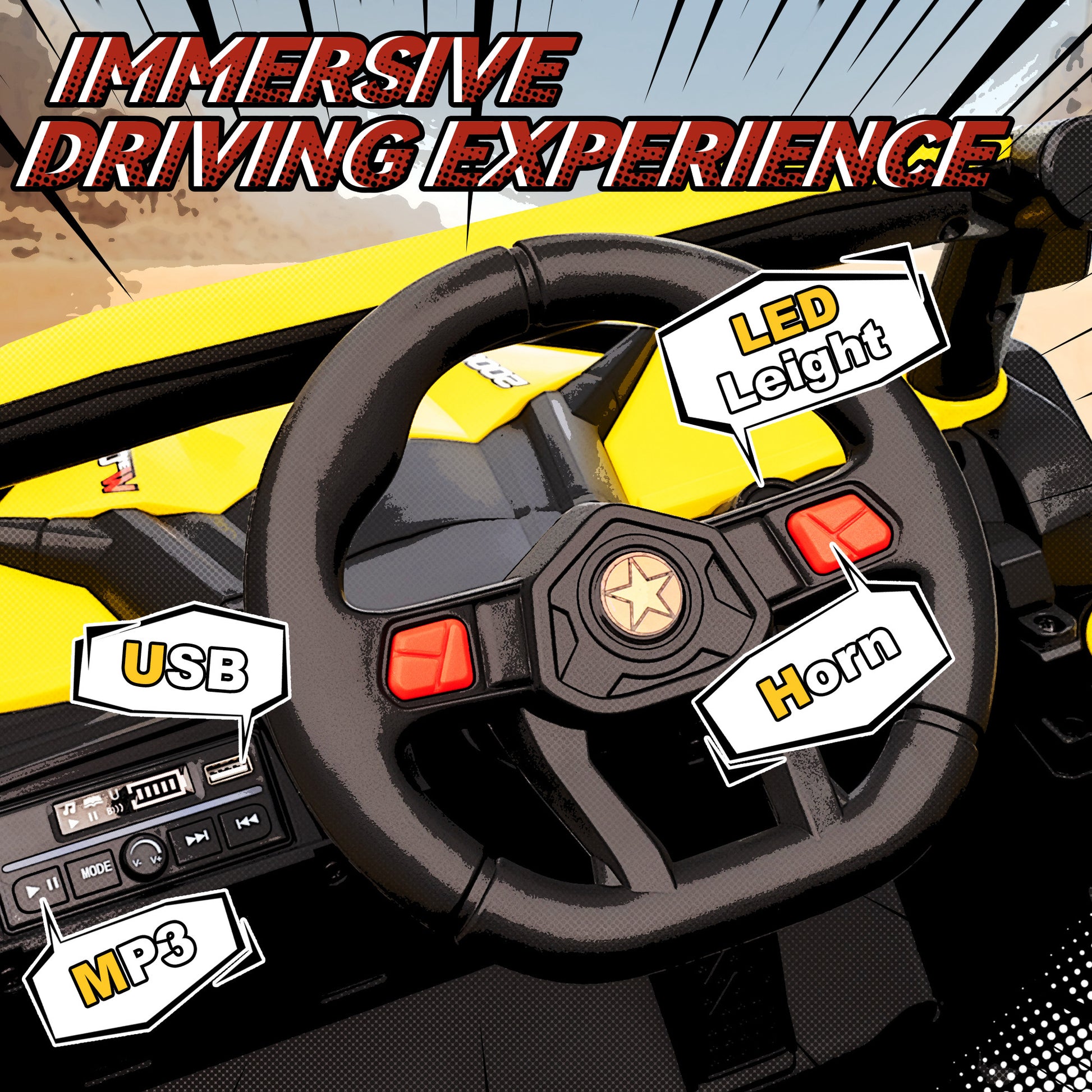 - Working headlights, horn and music offer a fun, immersive UTV driving adventure