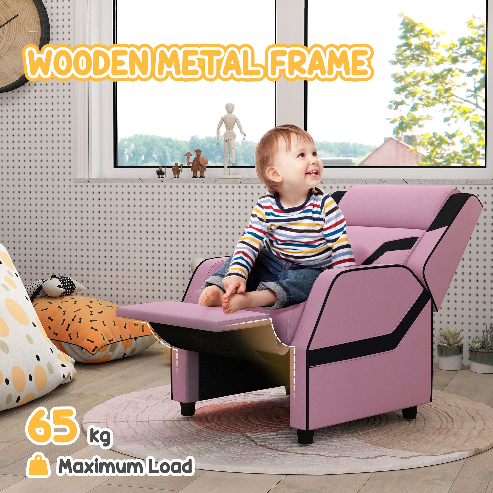 AIYAPLAY 2 in 1 Kids Chair Recliner with Backrest, Armrest, Footrest, PU Leather, for 3-9 Years Old, Pink