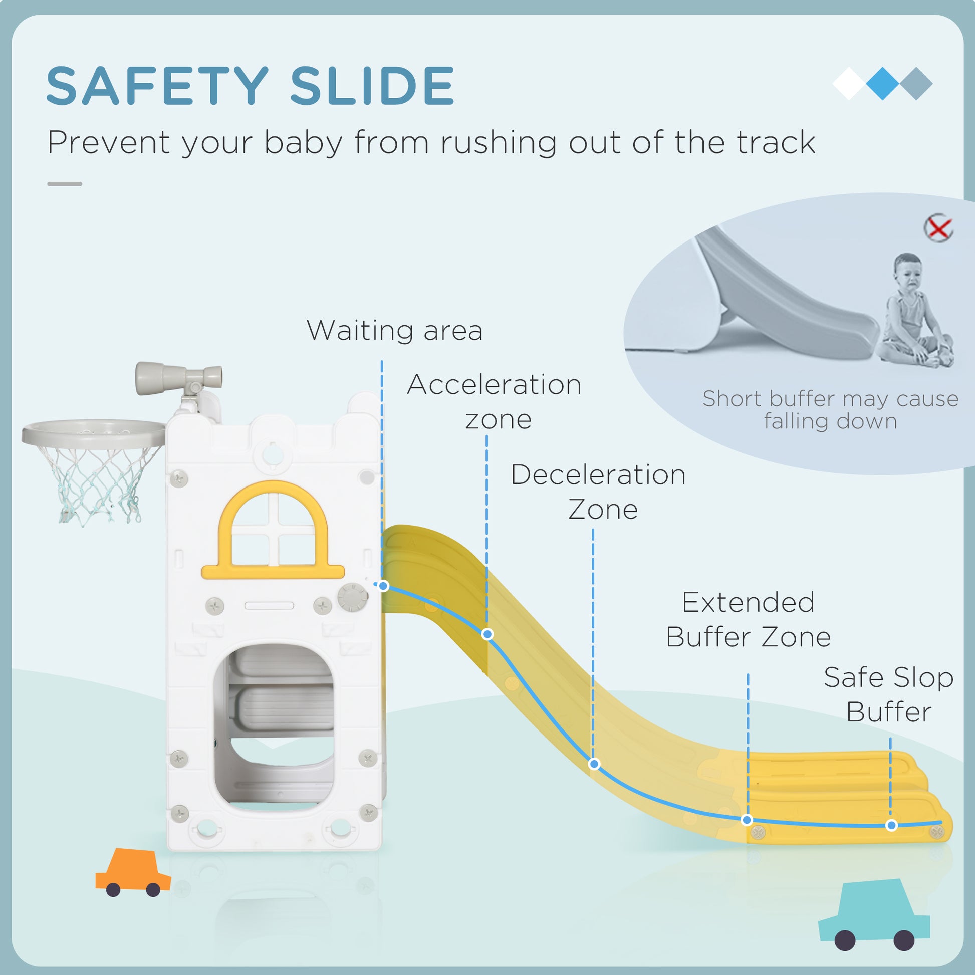 AIYAPLAY 4 in 1 Toddler Slide with Basketball Hoop, Climber, Telescope, Storage Basket, for Ages 1-3 Years, Yellow