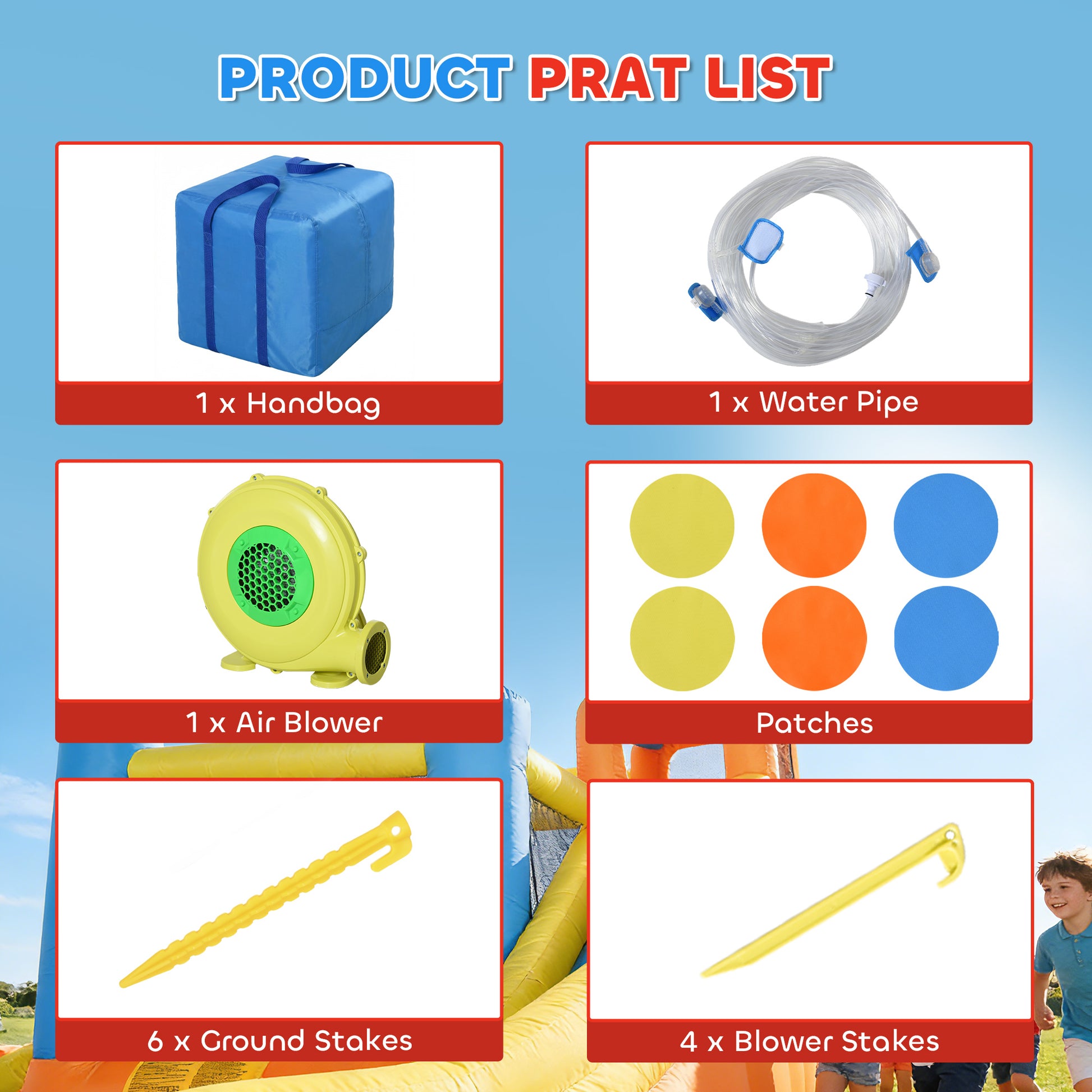 AIYAPLAY 5 in 1 Bouncy Castle for Children, Inflatable Bounce House with Dual Slides, Pool, Climbing Wall, Water Cannons, Blower