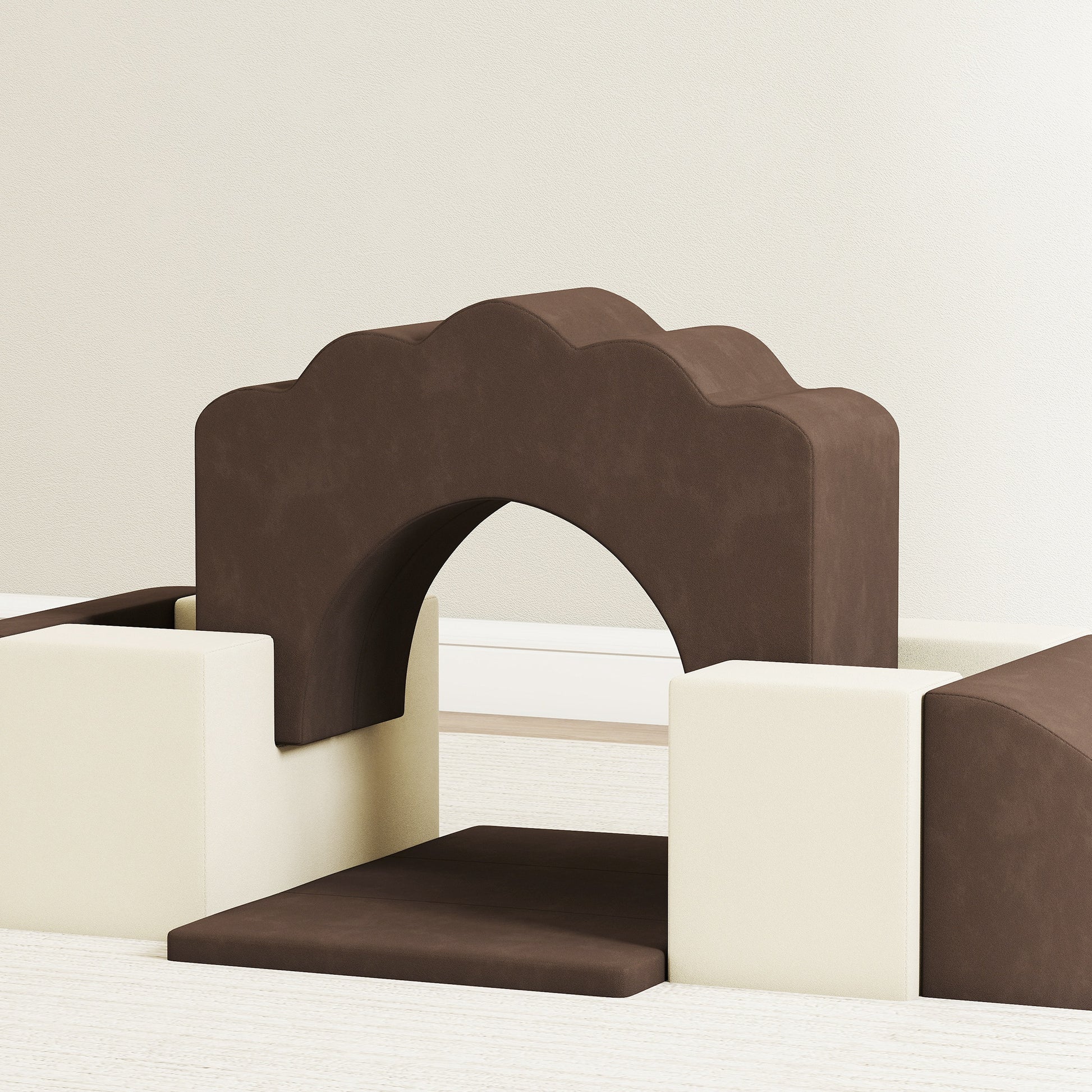 AIYAPLAY 7 Piece Kids Soft Play Set with Detachable Cover, Baby Indoor Climb and Crawl Foam Toy for Toddlers, Preschoolers, Brown