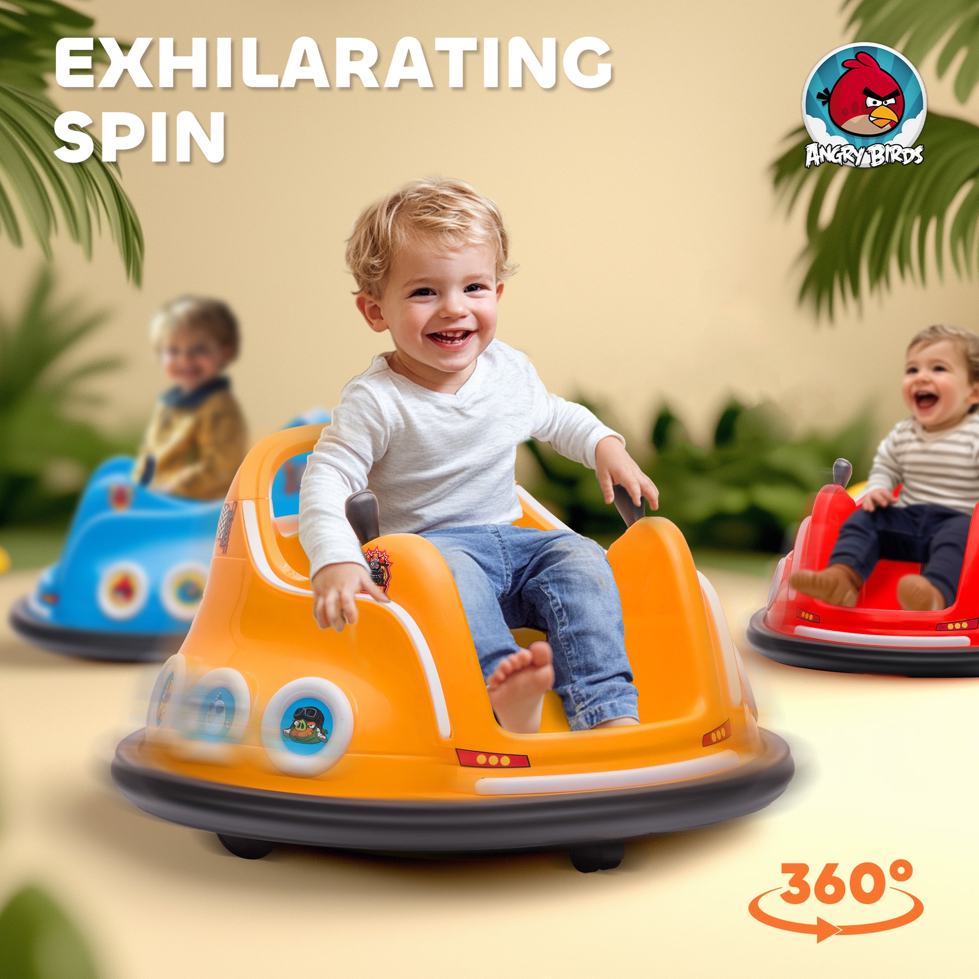 AIYAPLAY Angry Bird Licensed Waltzer Car, 12V Kids Bumper Car w/ Joysticks, Remote, Music LED Lights, Orange