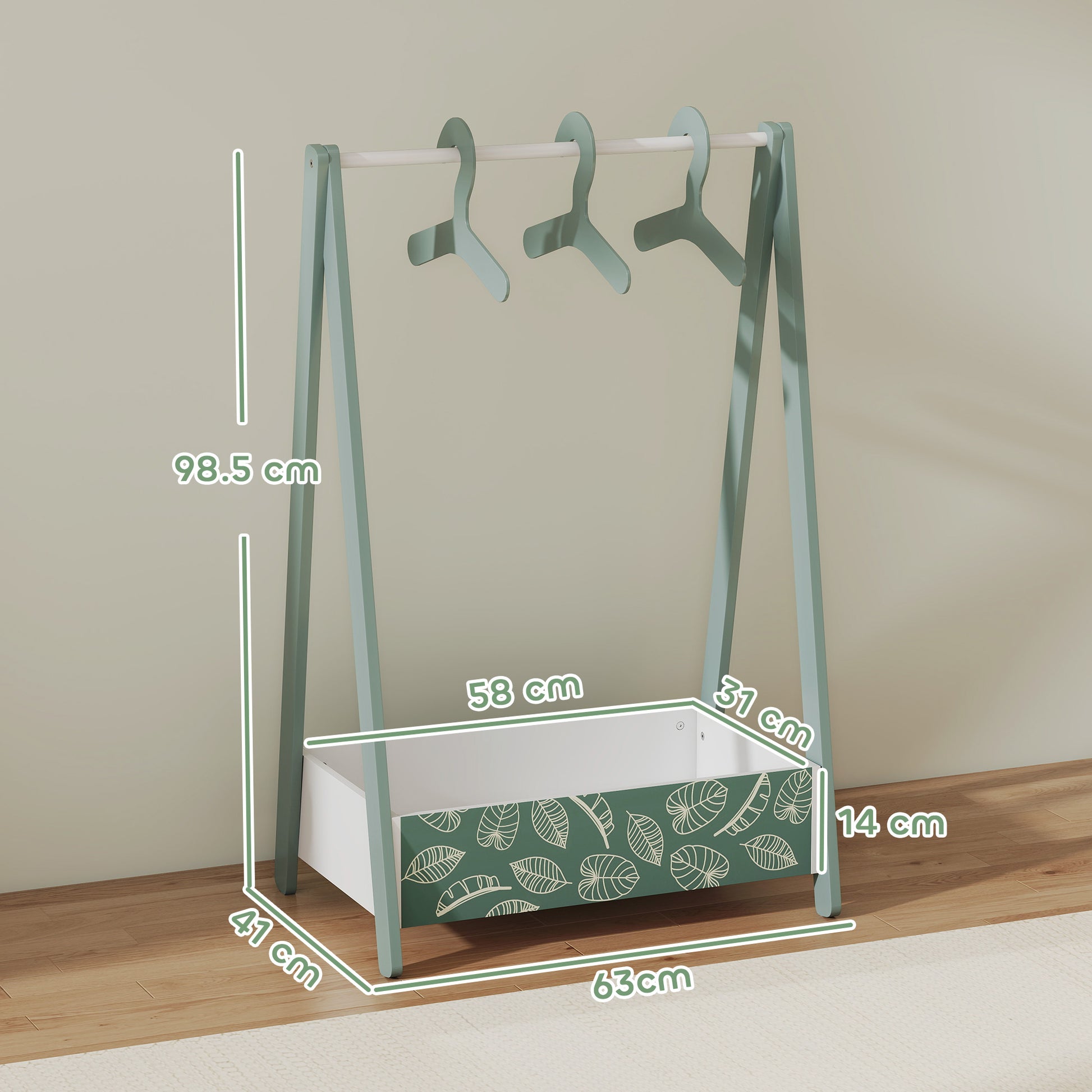 AIYAPLAY Baby Clothing Rack with Hangers, Storage Shelf for Bedroom, Leaf Theme, for Ages 3-6, Green