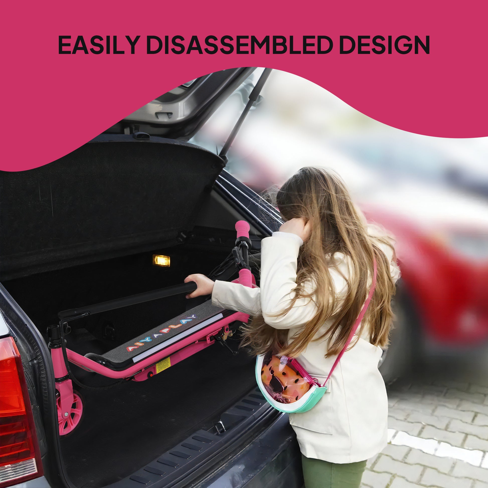 AIYAPLAY Electric Scooter for Kids Aged 6-14 Years, with Colourful Lights, Pink