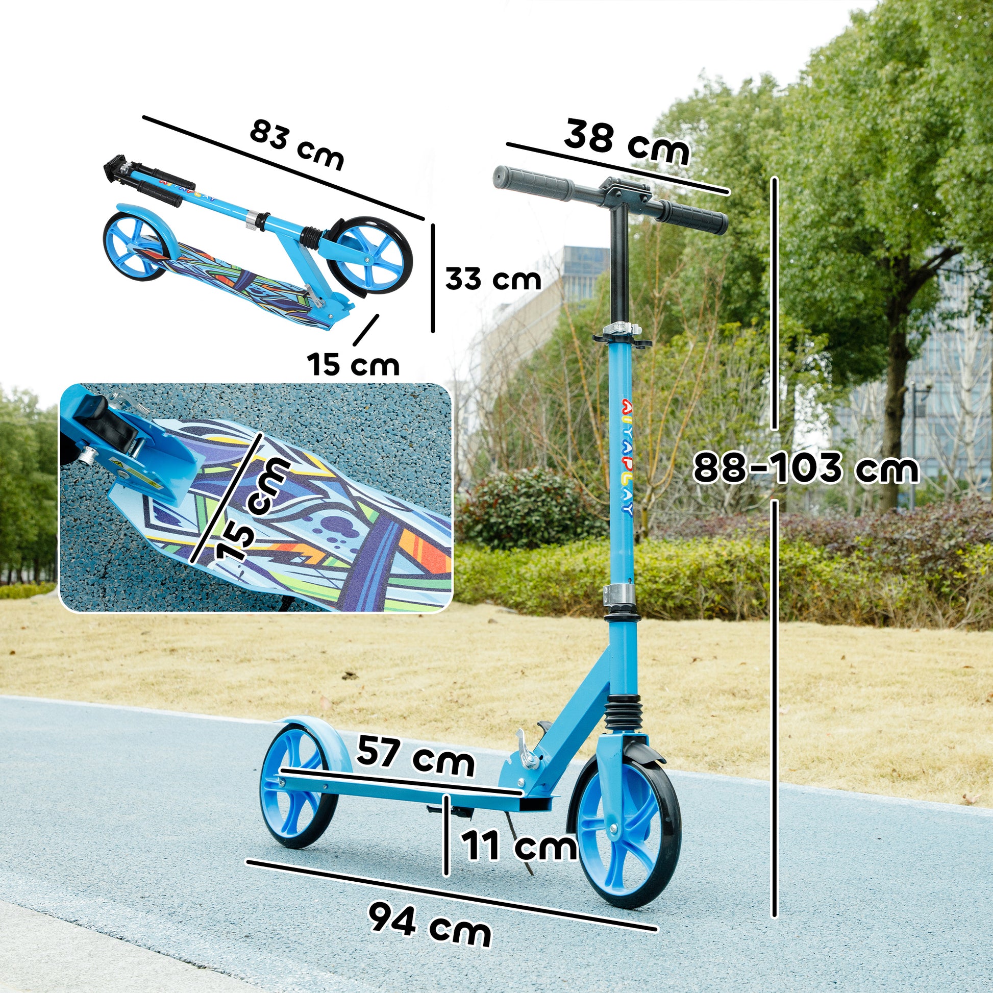 AIYAPLAY Foldable Kids Scooter with Adjustable Handlebar, 200mm Big Wheel, Rear Fender Brake, for Ages 6-12 Years, Blue