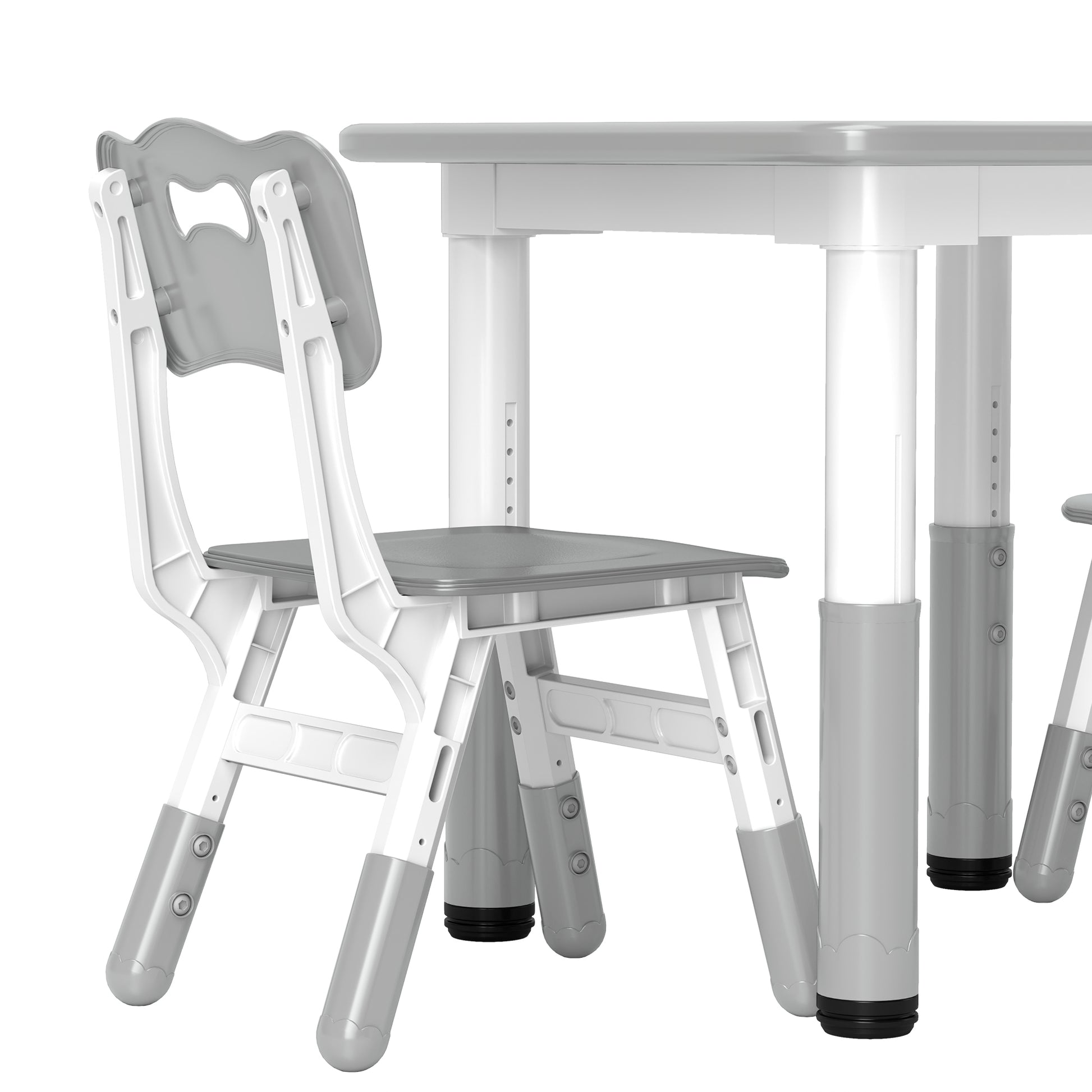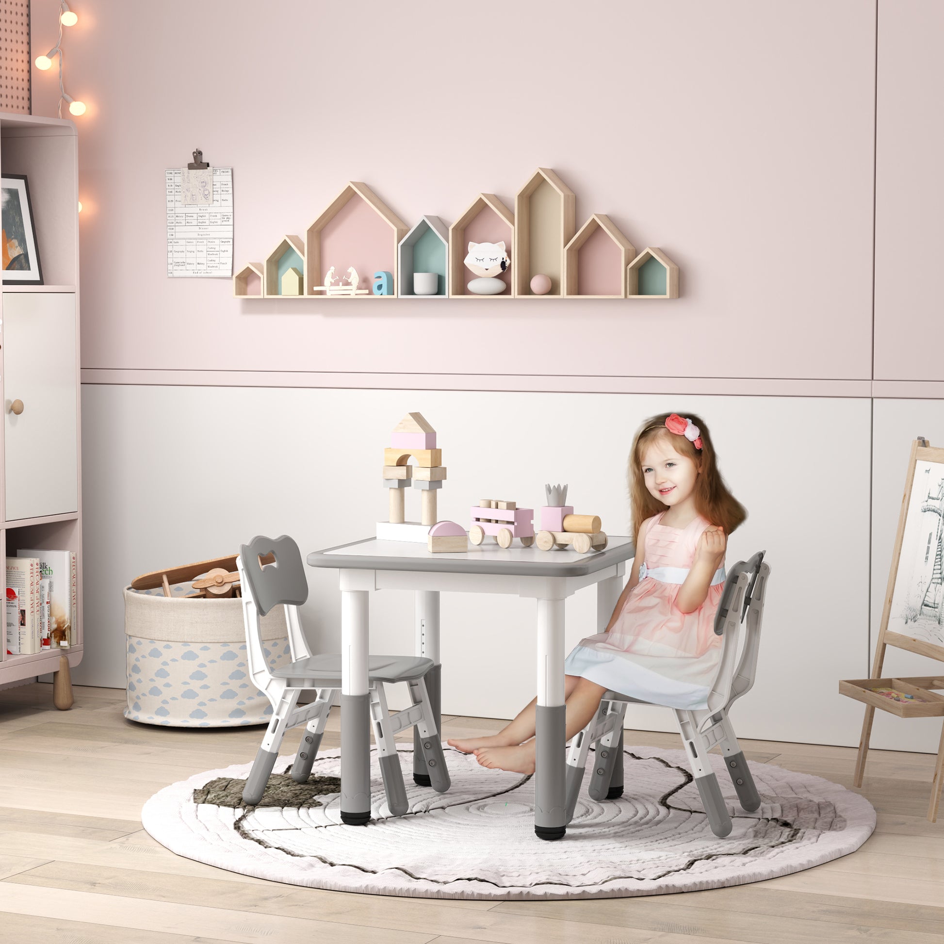AIYAPLAY Height Adjustable Toddler Table and Chair Set, 3 Pcs Children Activity Table w/ 2 Chairs, for Playroom, Bedroom - Grey