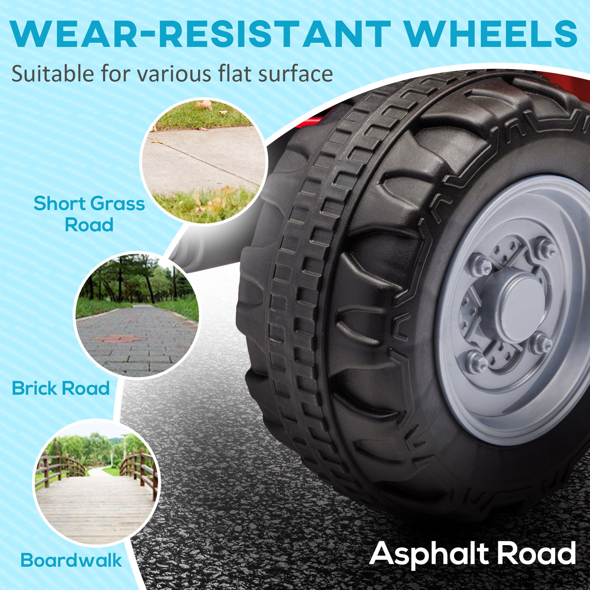 - Four wide and textured tyres for a stable and smooth ride