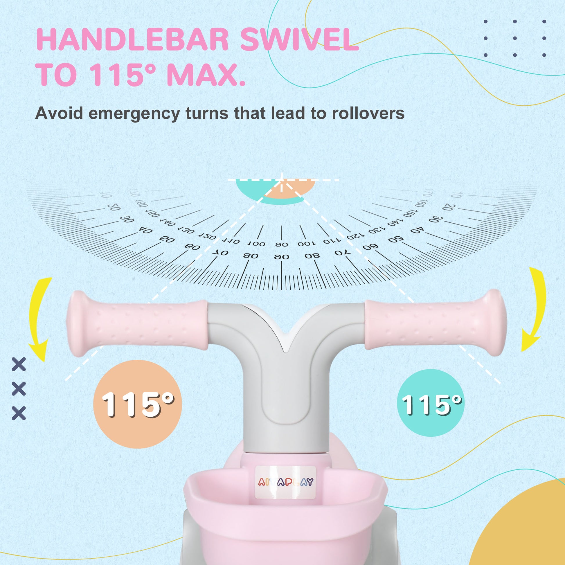AIYAPLAY Kids Balance Bike for 1-3 Years Old with Adjustable Seat, Silent Wheels, Pink