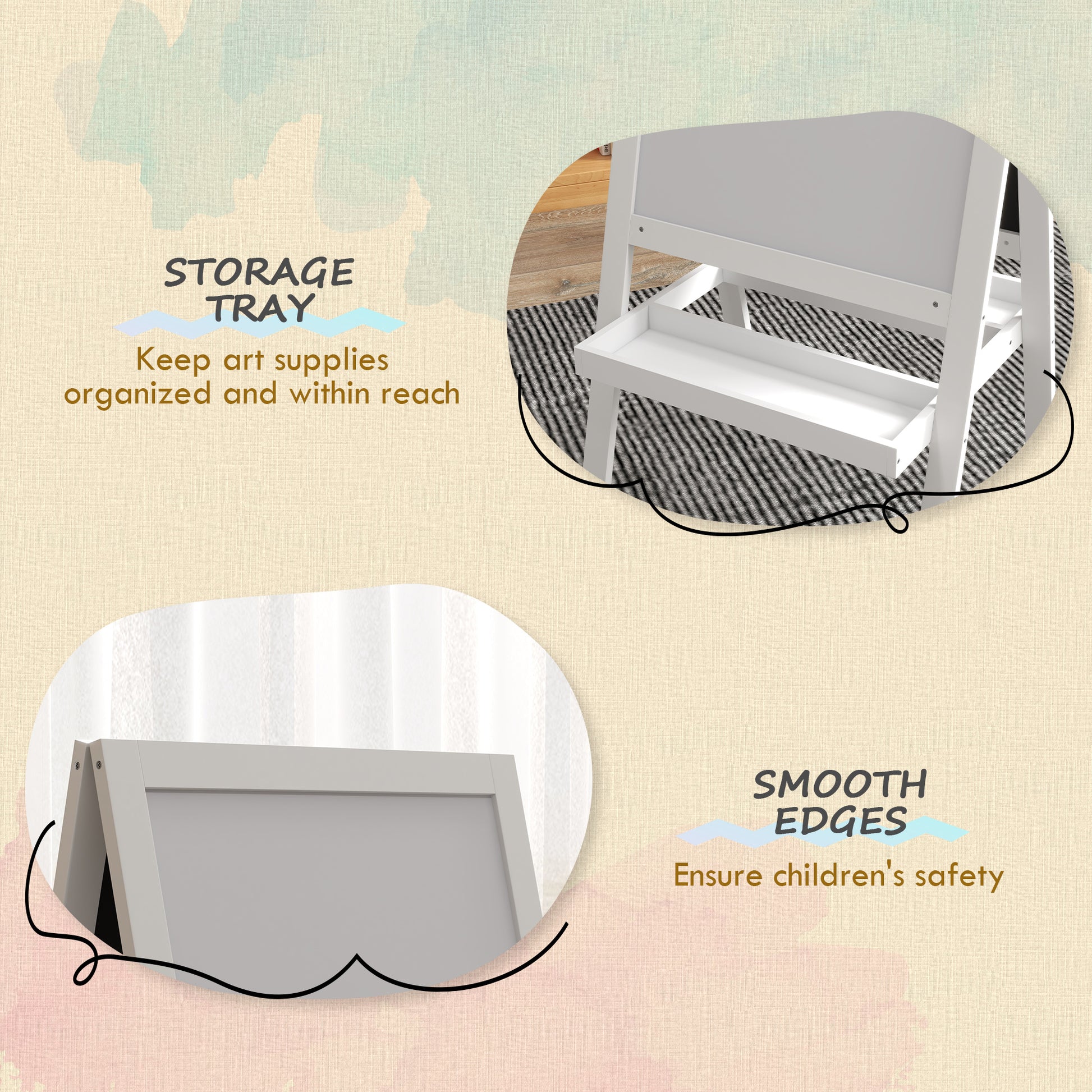 AIYAPLAY Kids Easel, Art Easel with Double Sided Whiteboard, Chalkboard, Storage, 2 in 1 Standing Easel for Toddlers 18-48 Months, White