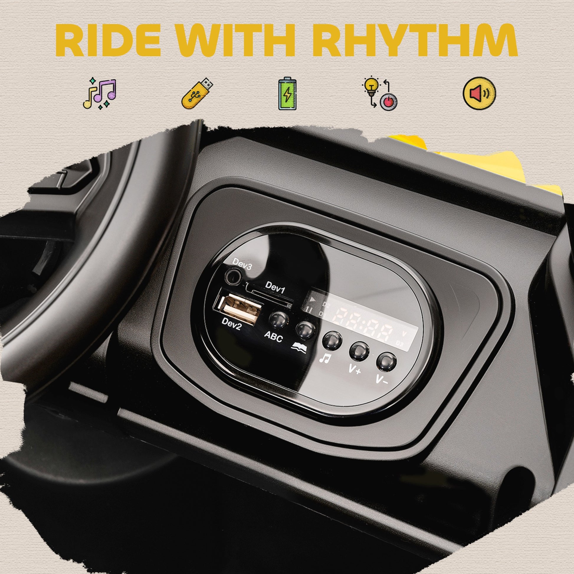 Let children explore with the AIYAPLAY kids electric UTV! Dual 12V motors provide smooth rides, while the functional rear electric bucket lets kids transport small items like toys. With a soft start and four-wheel suspension, your child can enjoy stable journeys independently. Adults can join the fun using the remote control. USB, TF card and MP3 ports keep every ride accompanied by music, making each adventure joyful and immersive.