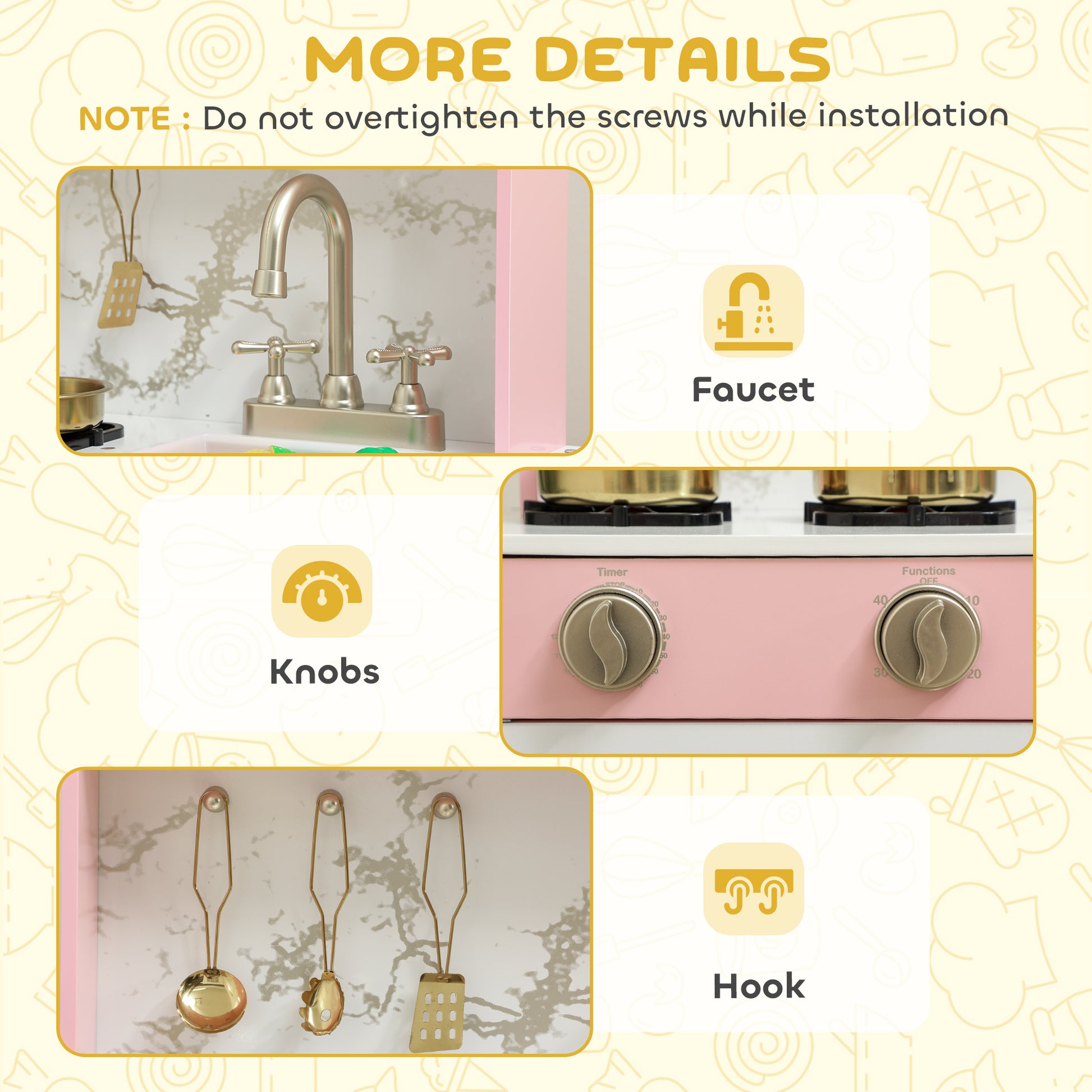 AIYAPLAY Kitchen Playset with Pretend Play Cooking Accessories, Play Kitchen with Oven, Microwave and Sink, Pink