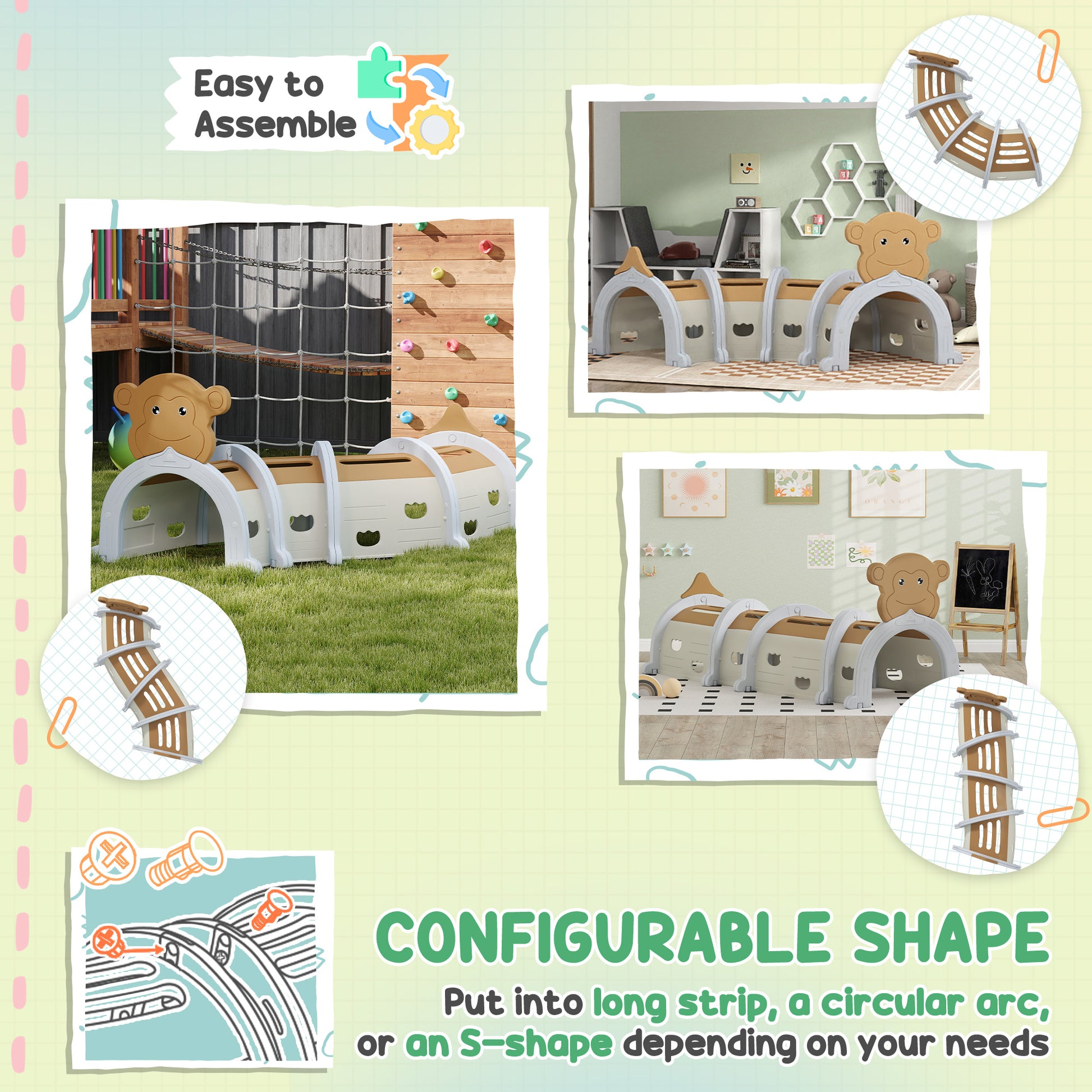 AIYAPLAY Monkey-Design Kids Play Tunnel for Crawling, Climbing, for ages 3-6 Years, Brown