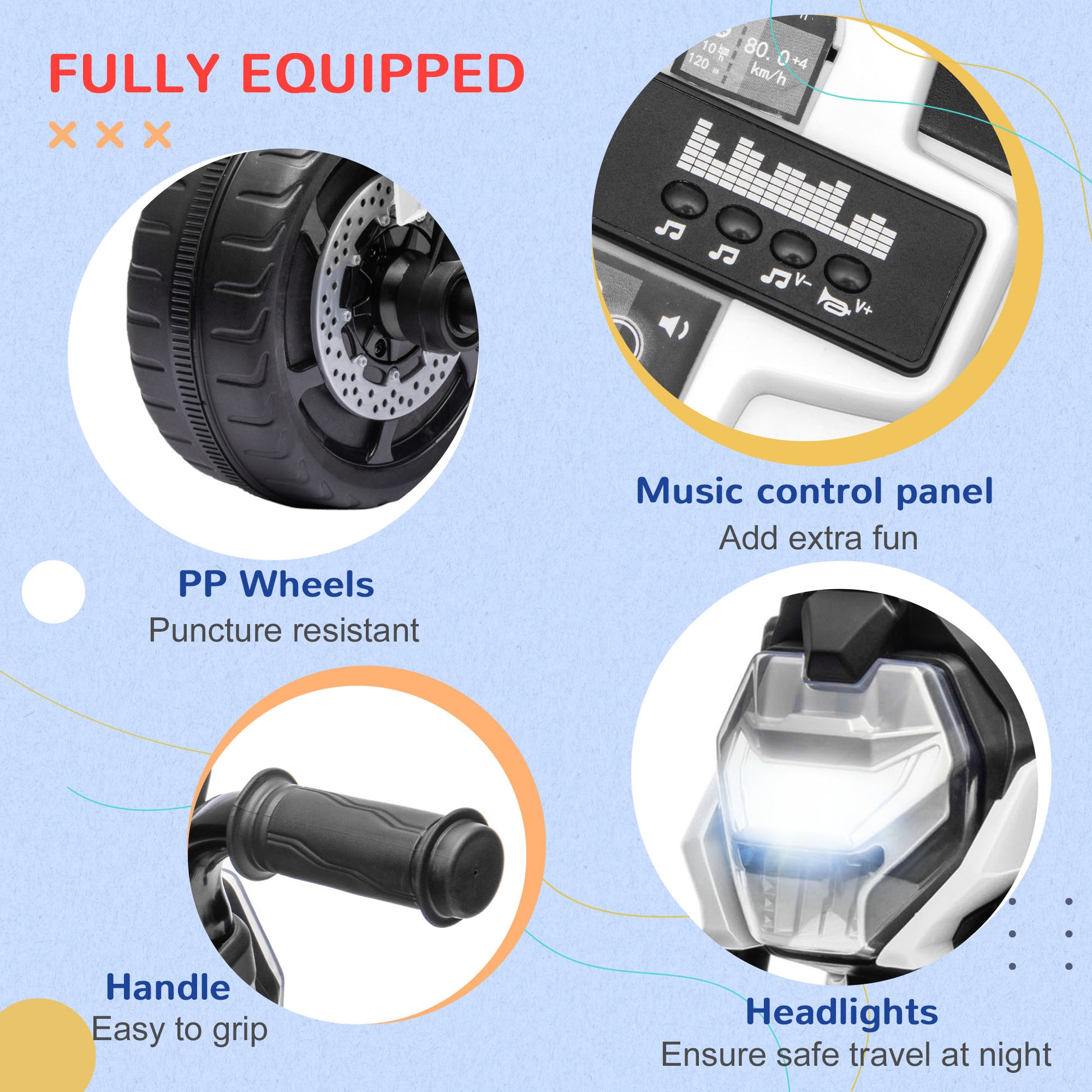 AIYAPLAY Motorcycle Design, 3 in 1 Toddler Trike, Sliding Car, Balance Bike with toy safety light, Music, Horn, White