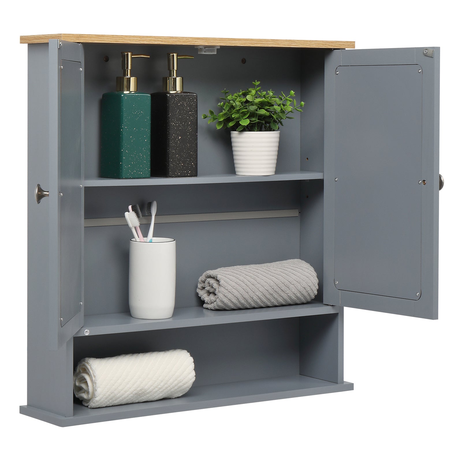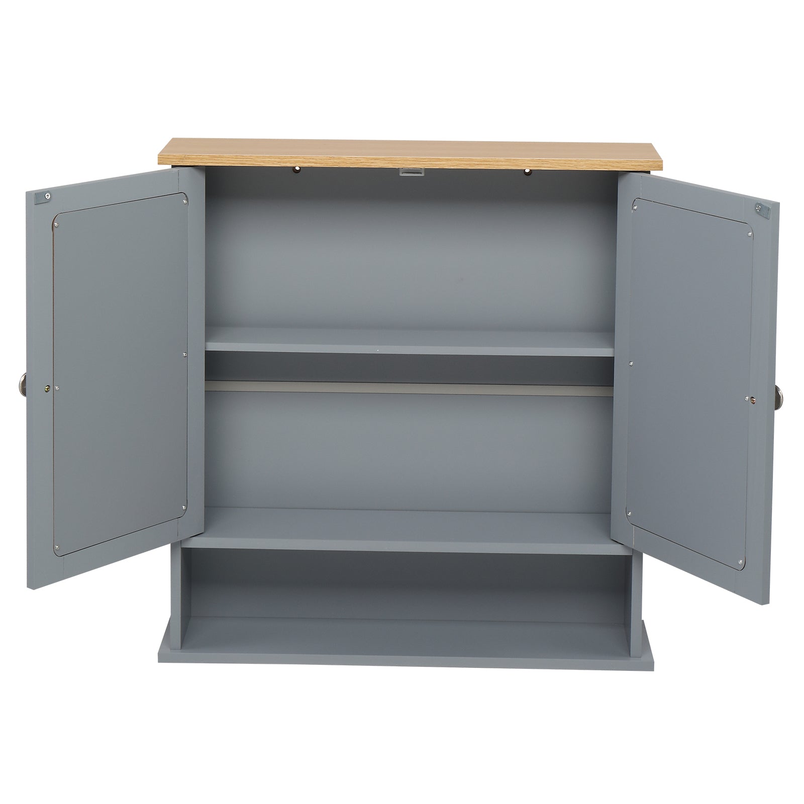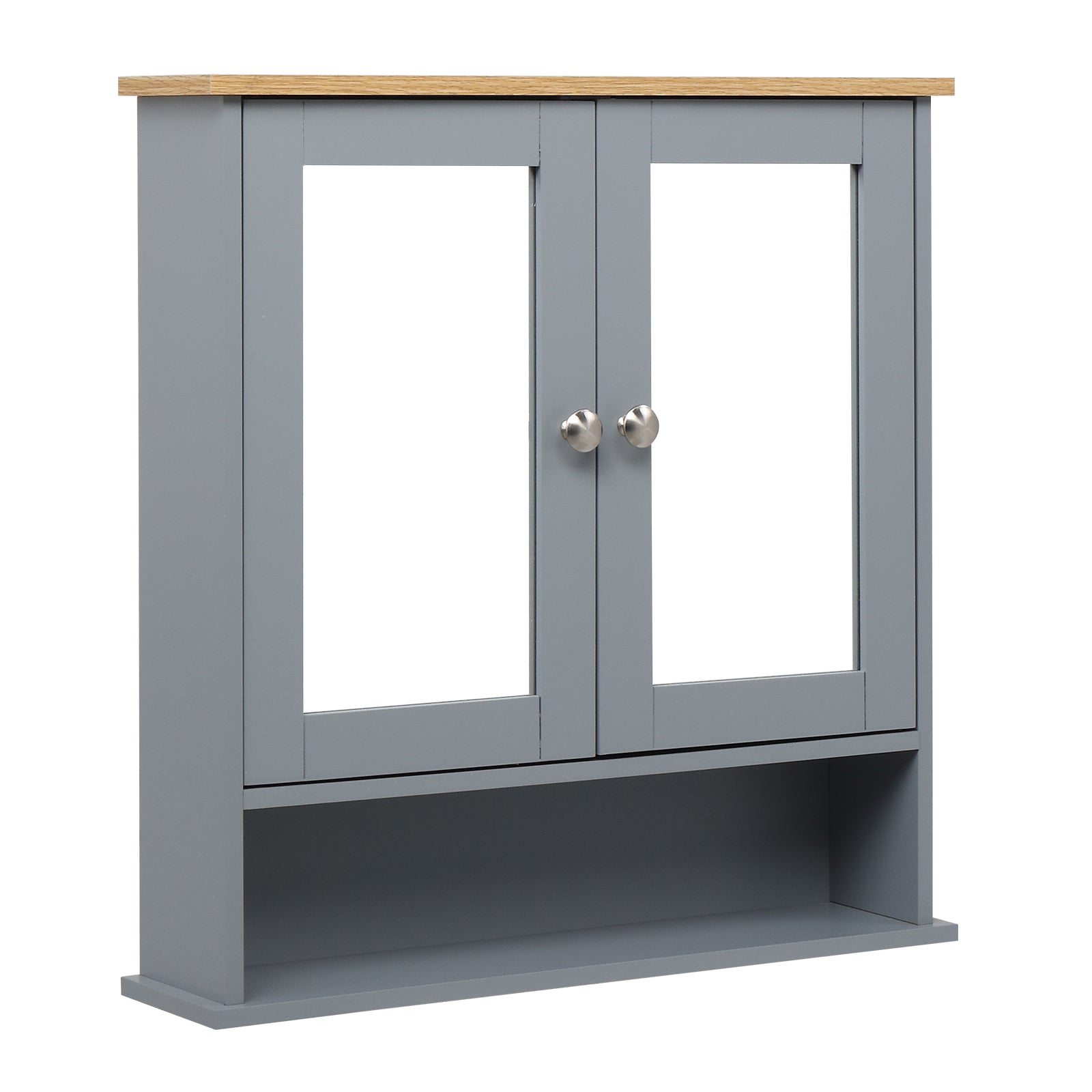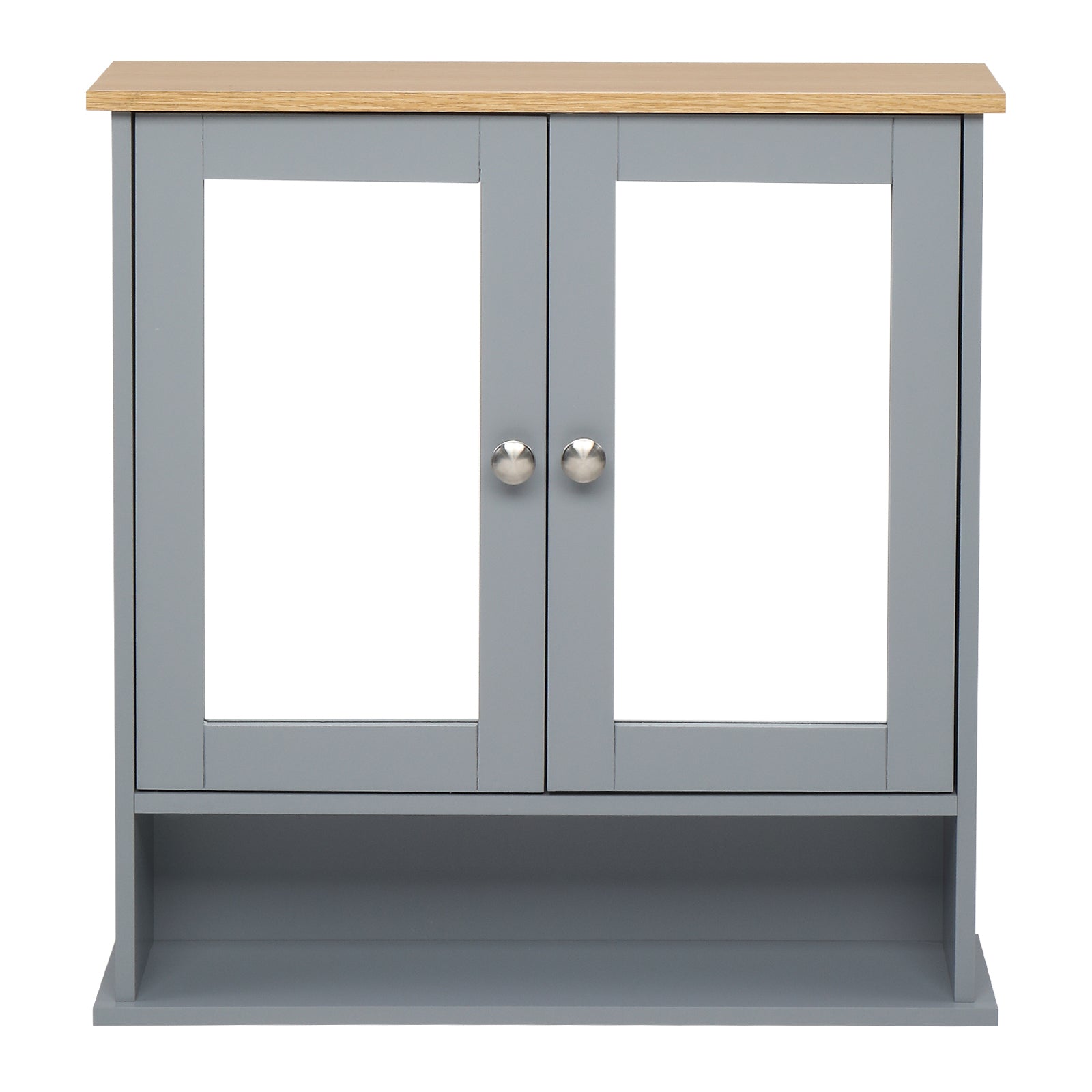 FCH 2 Mirror Door 1 Storage Layer MDF Spray Paint Bathroom Wall Cabinet Gray
