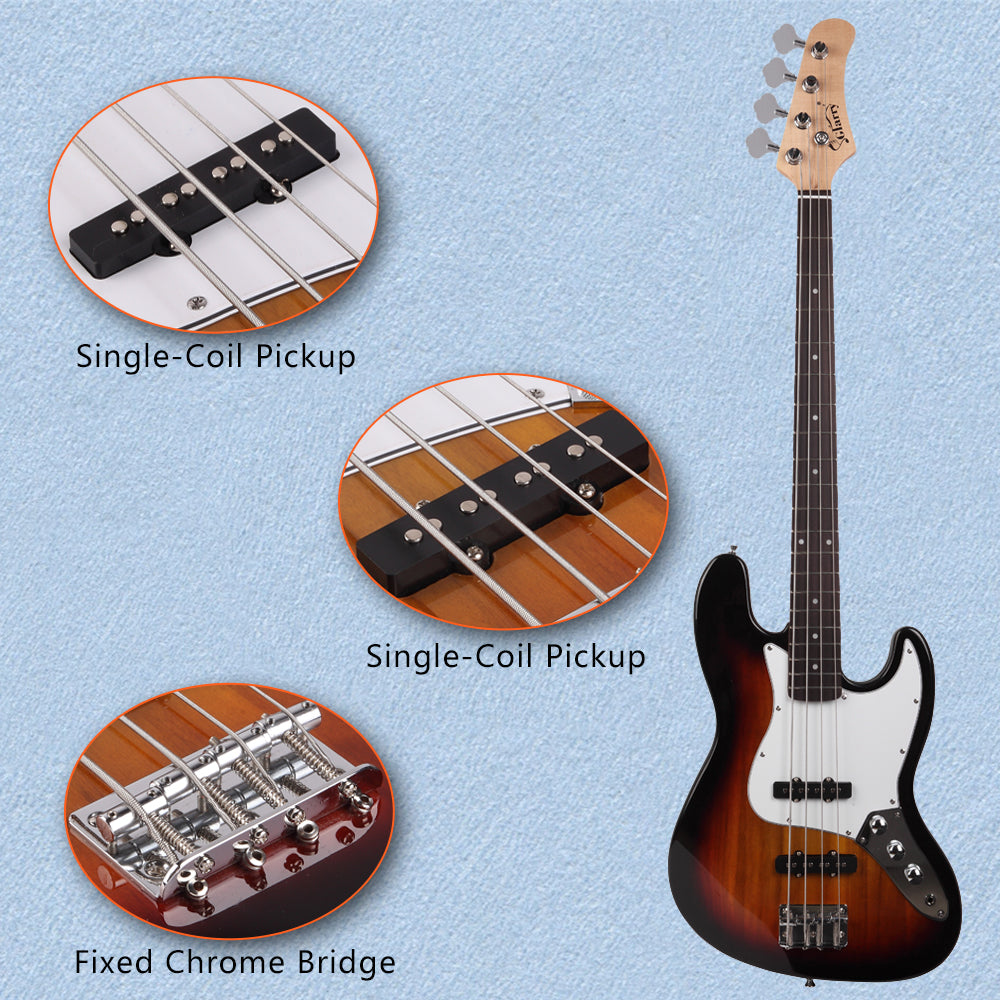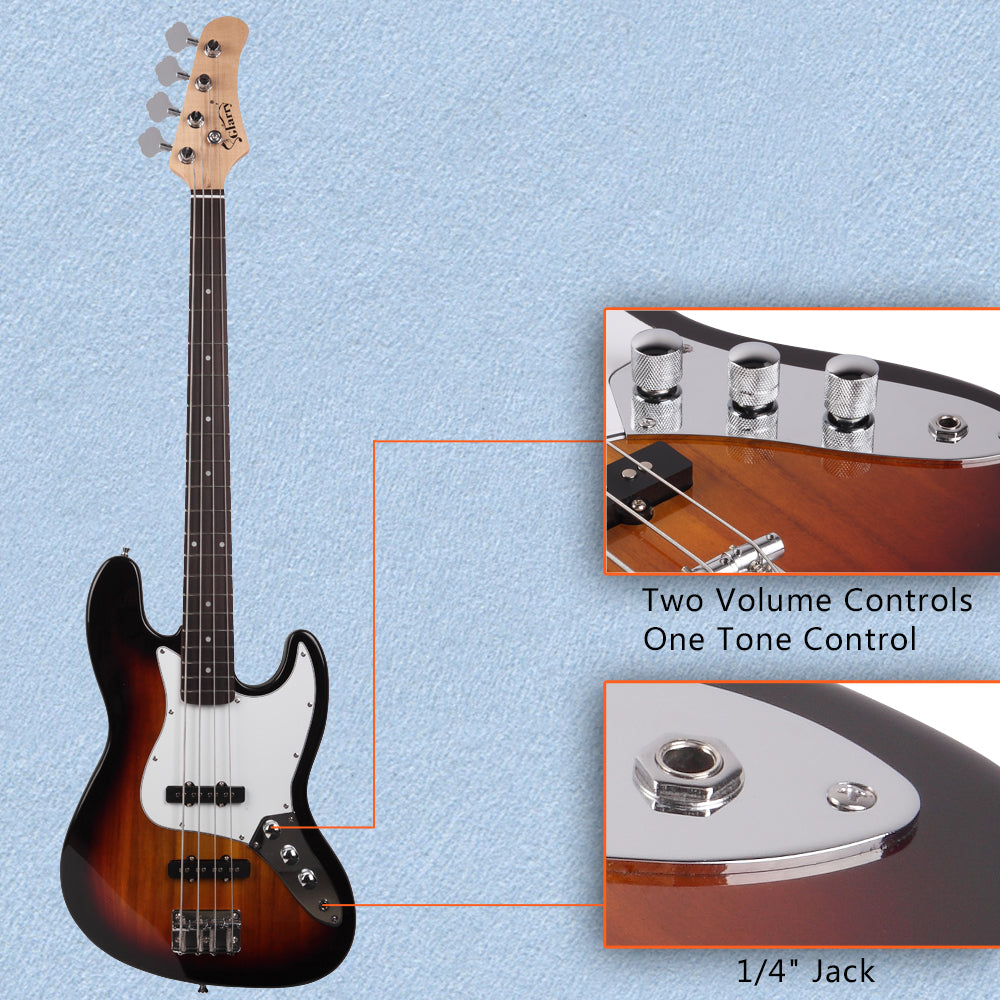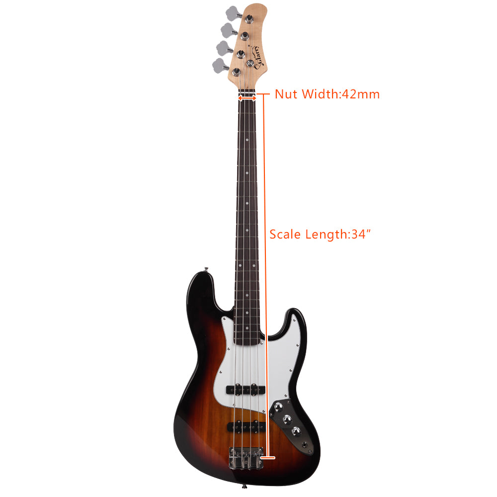 Glarry Electric GJazz Bass Guitar Cord Wrench Tool Sunset Color