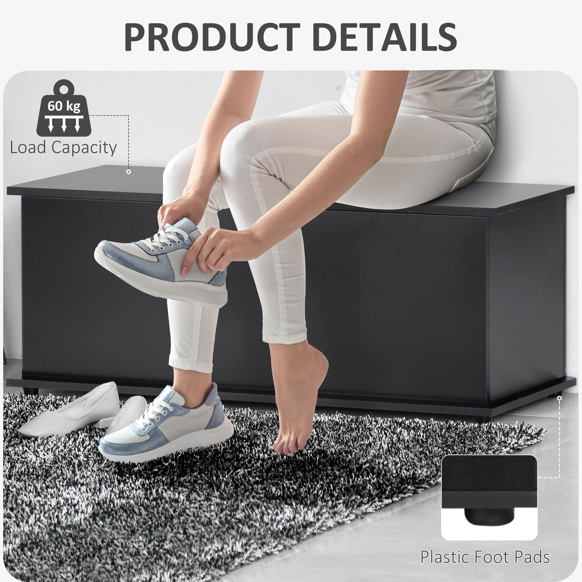 HOMCOM offers the optimal storage solution to all your organising needs with this simple modern designed storage chest. The robust wooden construction makes the lid and the internal space hold weight up to 120kg and 60kg. Constructed to offer a great decorative and practical addition to any room decor. This storage box can be used as a footstool or bed end bench.