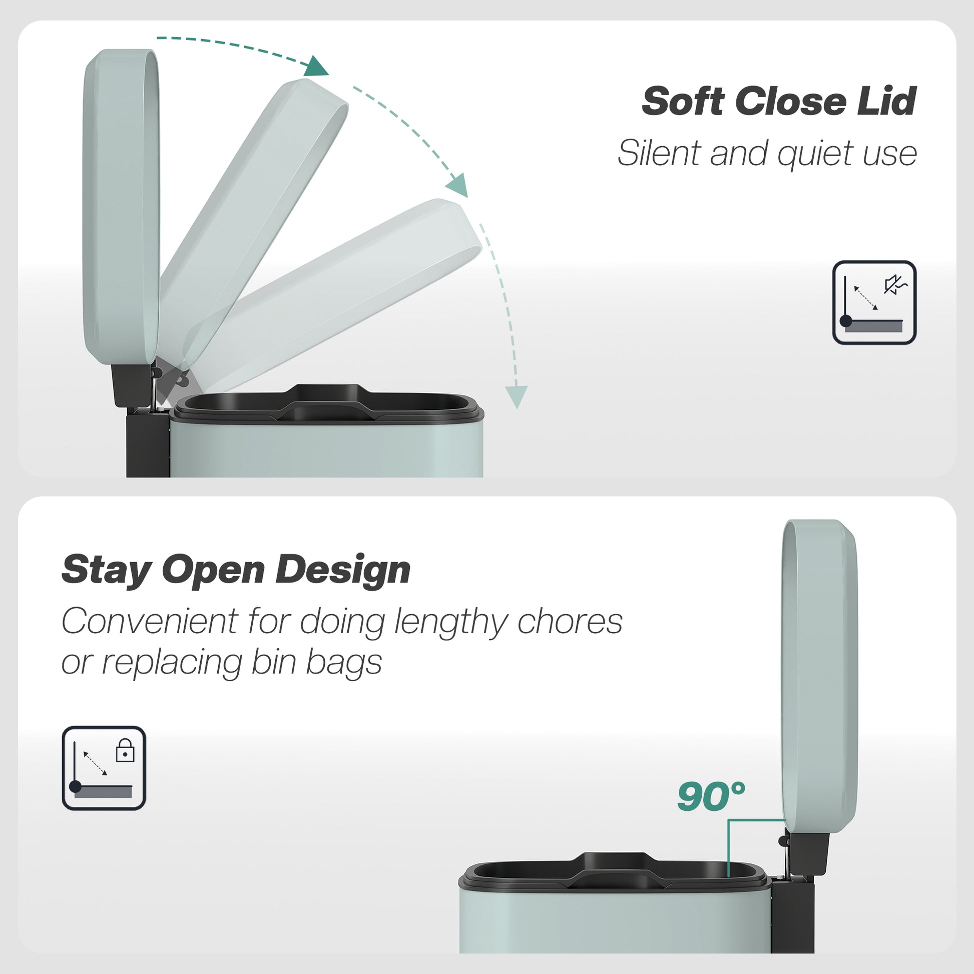 HOMCOM 12L Modern Boxy Metal Home Kitchen Bin - Light Green