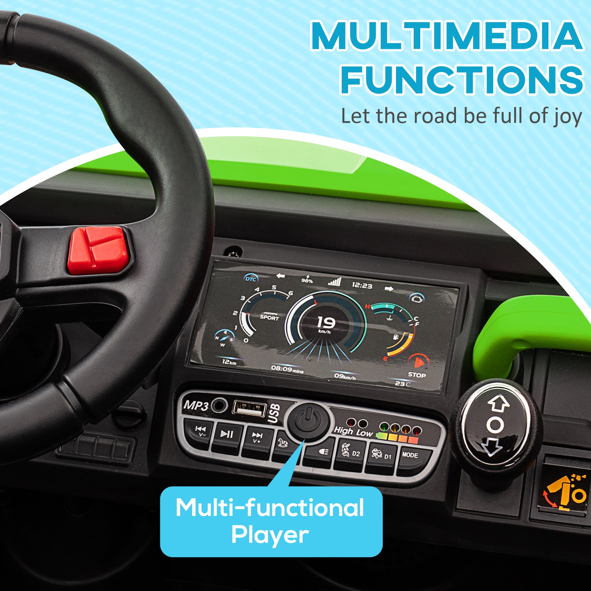 HOMCOM 12V 2 Seater Kids Electric Ride-On Car with Electric Bucket, Remote Control - Green