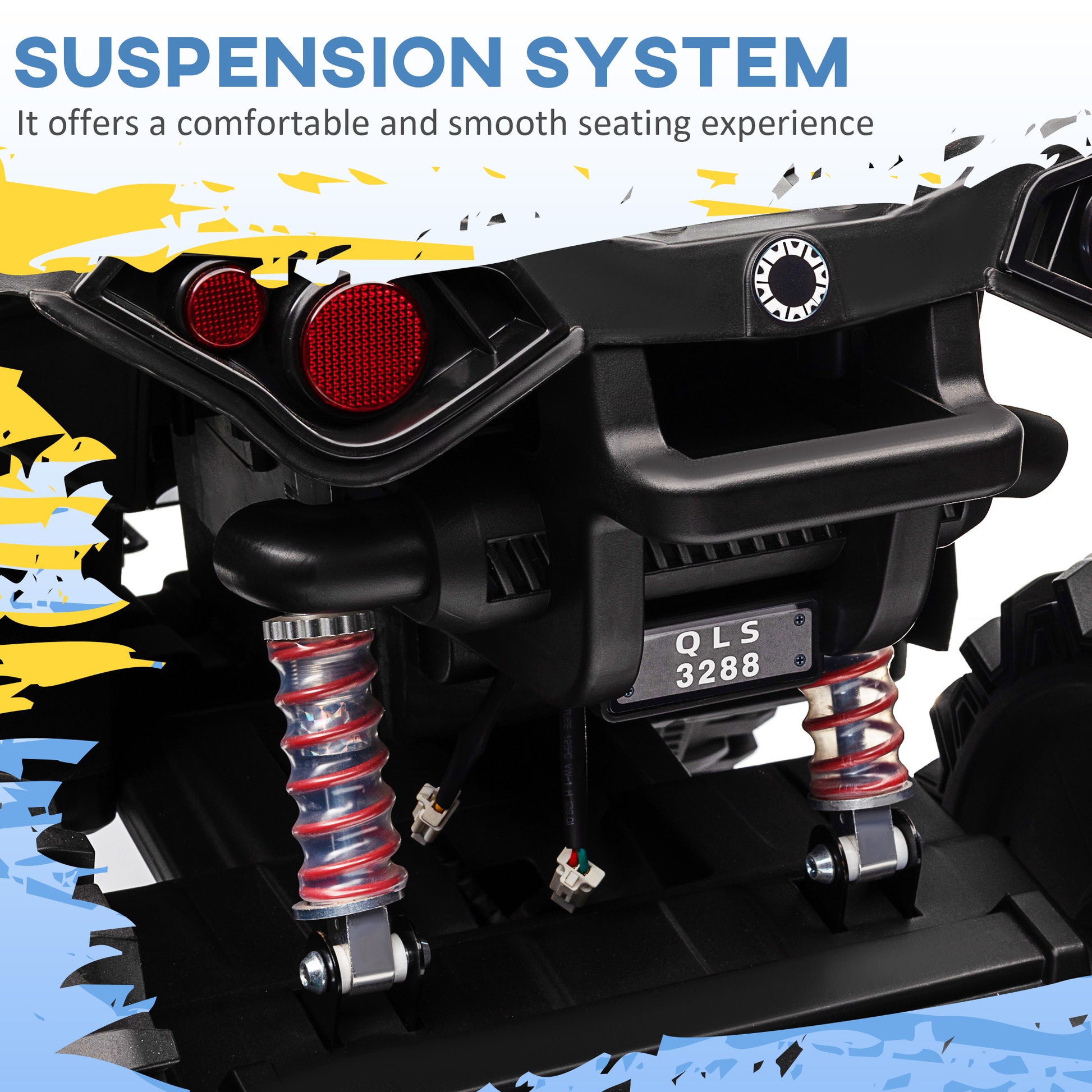 - A 12V motor, this ride-on can ride on different terrains