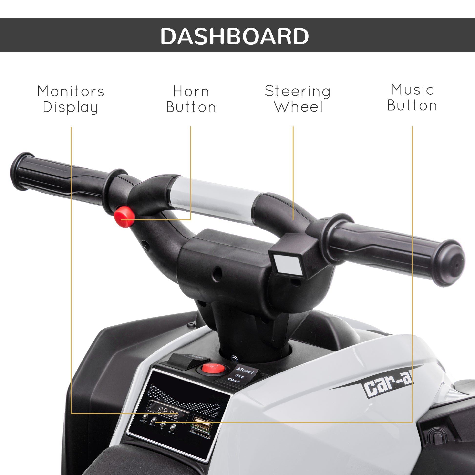 HOMCOM 12V Ride-On Quad Bike w/ Music, Horn, for Ages 3-5 Years - White