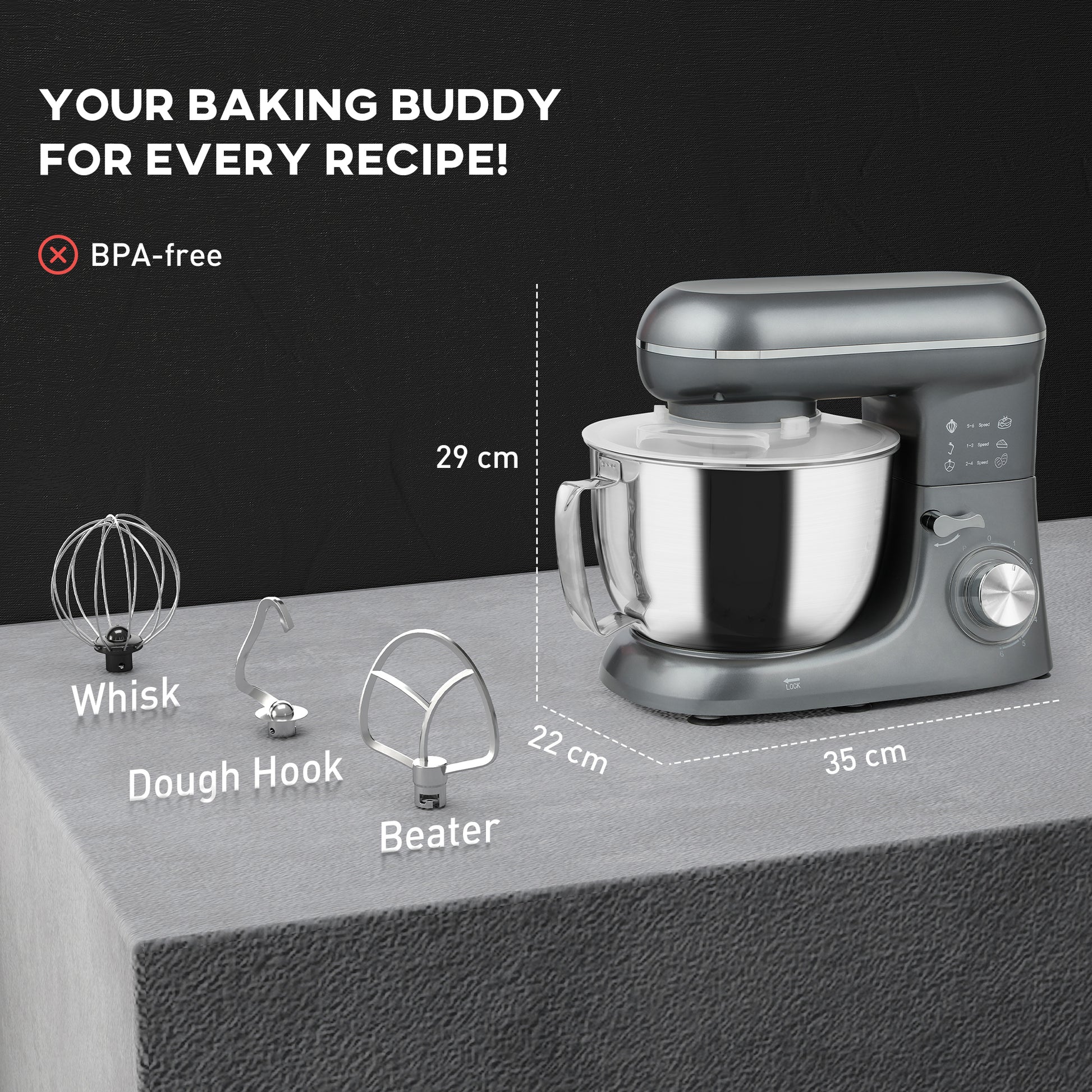 Every home baker needs a helping hand - go for this HOMCOM 1400W stand mixer. With six speeds and a pulsation setting, plus with a whisk, dough hook and beater included, you can whip up plenty - batter, pizza dough, bread dough, pastry, pasta and beyond. A 4.5L stainless steel bowl offers plenty of room for whipping up delicious treats for you and friends. Use yourself, or it makes an ideal gift.