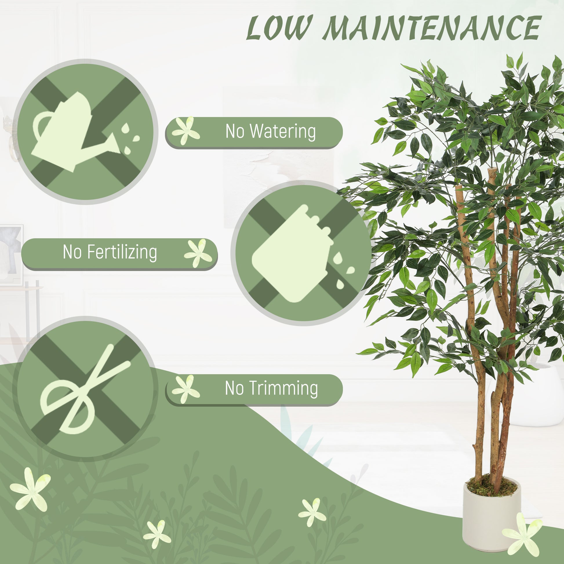 Struggling to bring life to your home without the constant upkeep of real plants? Bare corners can make a room feel unfinished and lacking in warmth. This HOMCOM fake plant is your effortless solution. Featuring real-touch PEVA leaves and a solid wood trunk, it arrives pre-potted in a stylish white planter, instantly creating a balanced, refined oasis and elevating your sense of well-being at home.