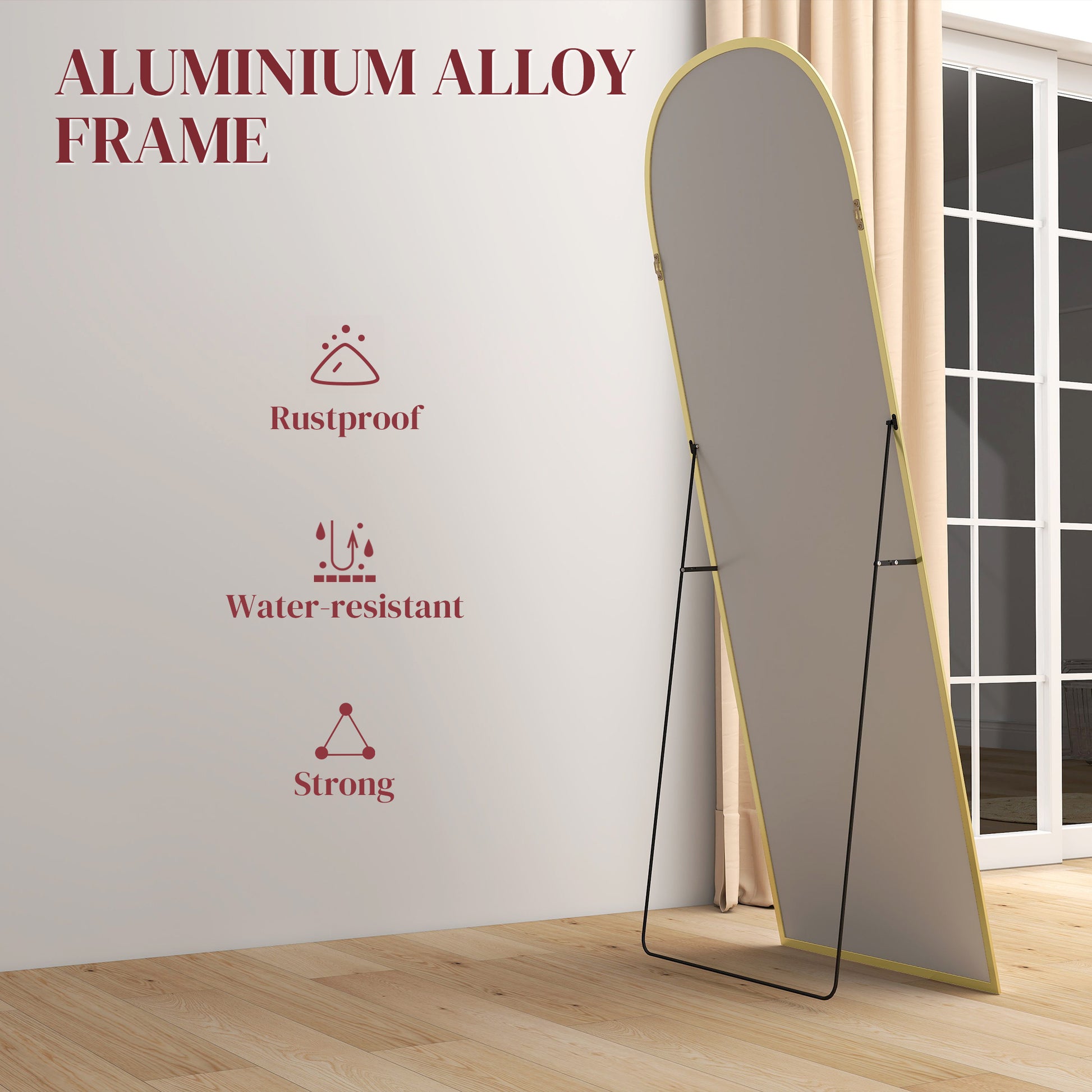 HOMCOM 165cm Aluminium Frame Standing Mirror - Gold