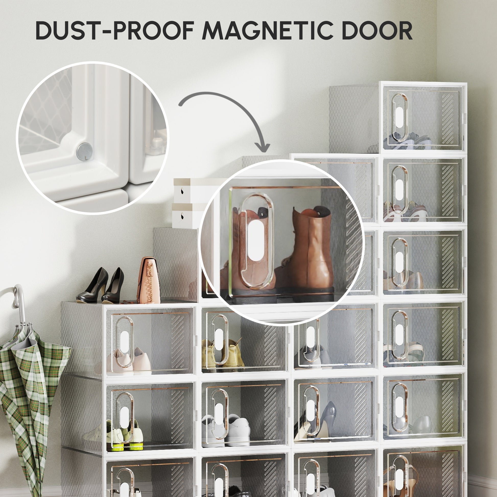 HOMCOM 18PCS Clear Shoe Box, Plastic Stackable Shoe Storage Box for UK/EU Size up to 12/46 with Magnetic Door for Women/Men, 28 x 36 x 21 cm