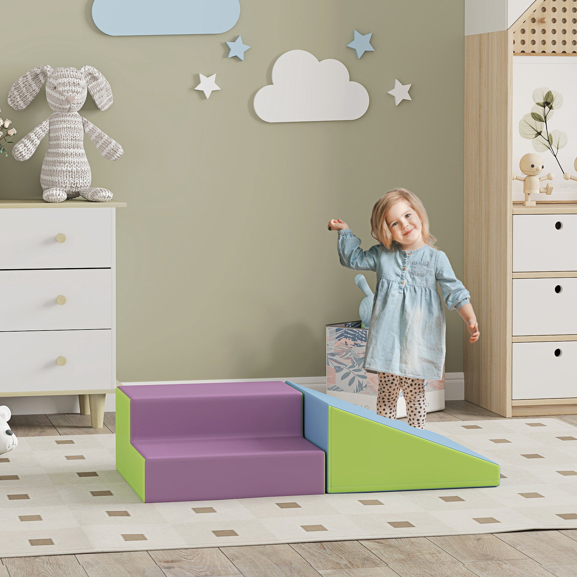Transform any corner into an exciting play area with the HOMCOM kids playset. Featuring two soft blocks, you'll arrange them in various ways for climbing, crawling and sliding. Great for energetic kids to burn off energy, it also supports their cognitive and physical development as they navigate the obstacles. Crafted from smooth, child-friendly materials, it's safe and easy to clean, ensuring a hygienic play space. Watch your little explorers embark on adventures right in your living room!