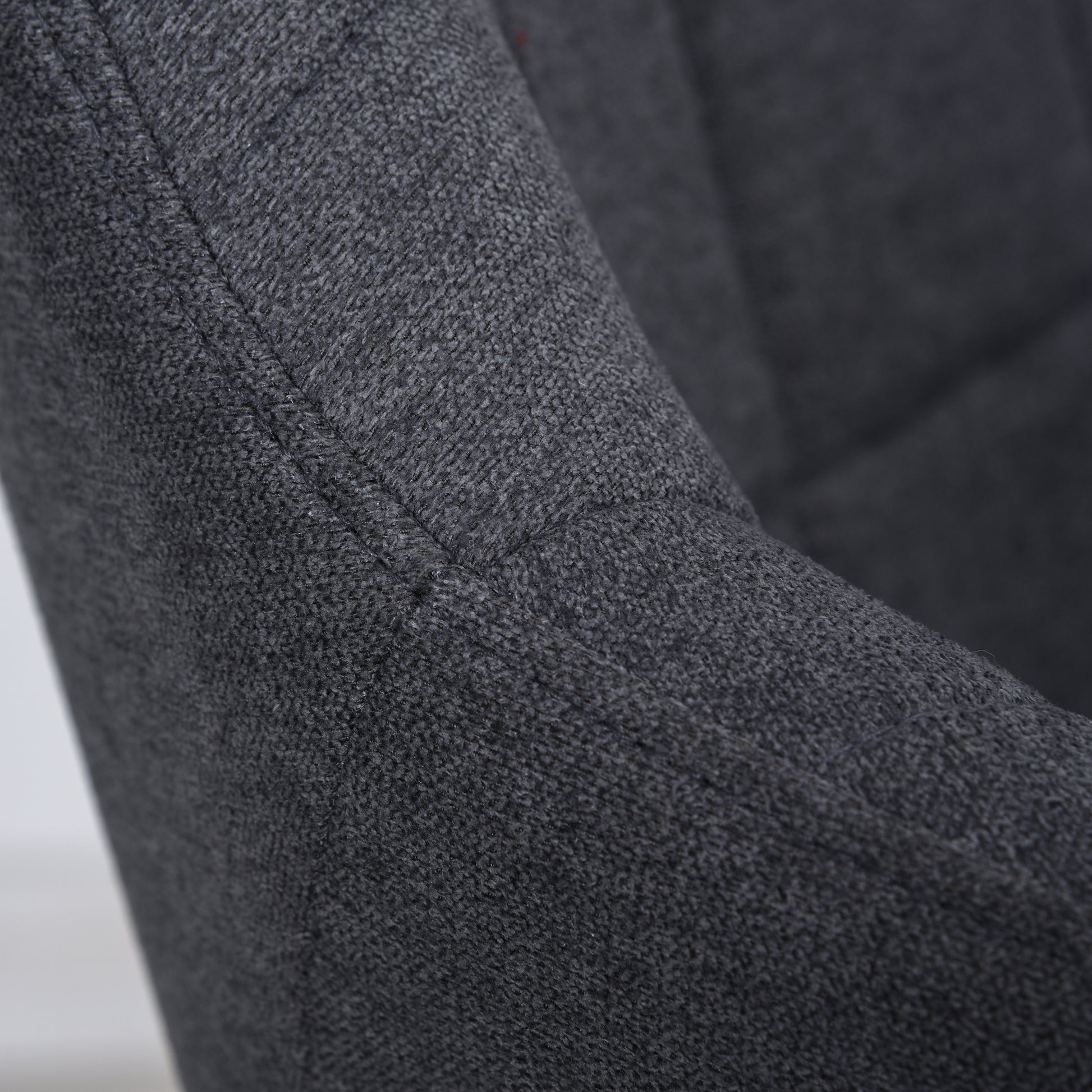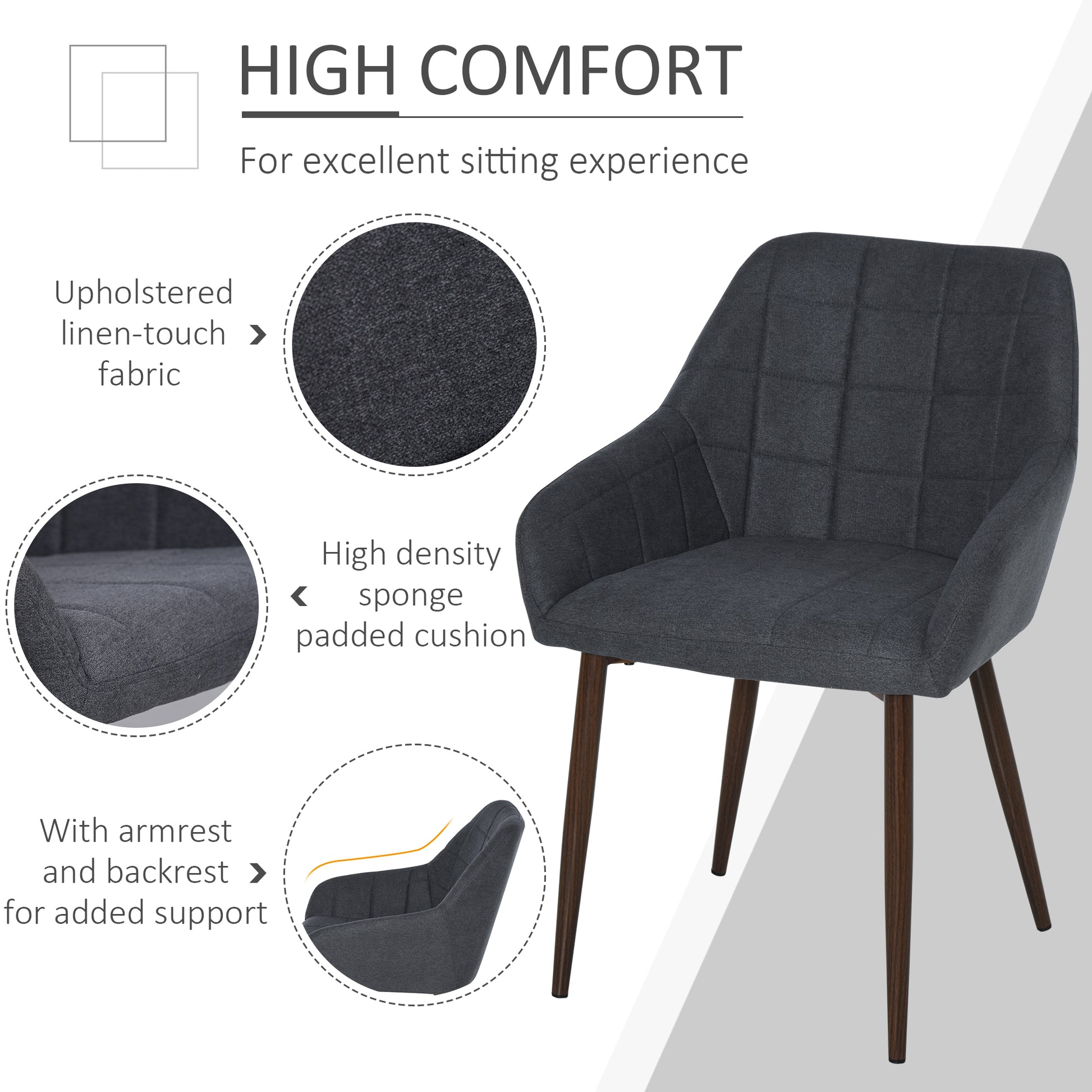 HOMCOM 2 Pieces Linen-Touch Fabric Dining Chair with Grid Pattern Cushion and Backrest, Mid Back Leisure Chair with Steel Leg, Sponge Padded Armchair for Dining Room