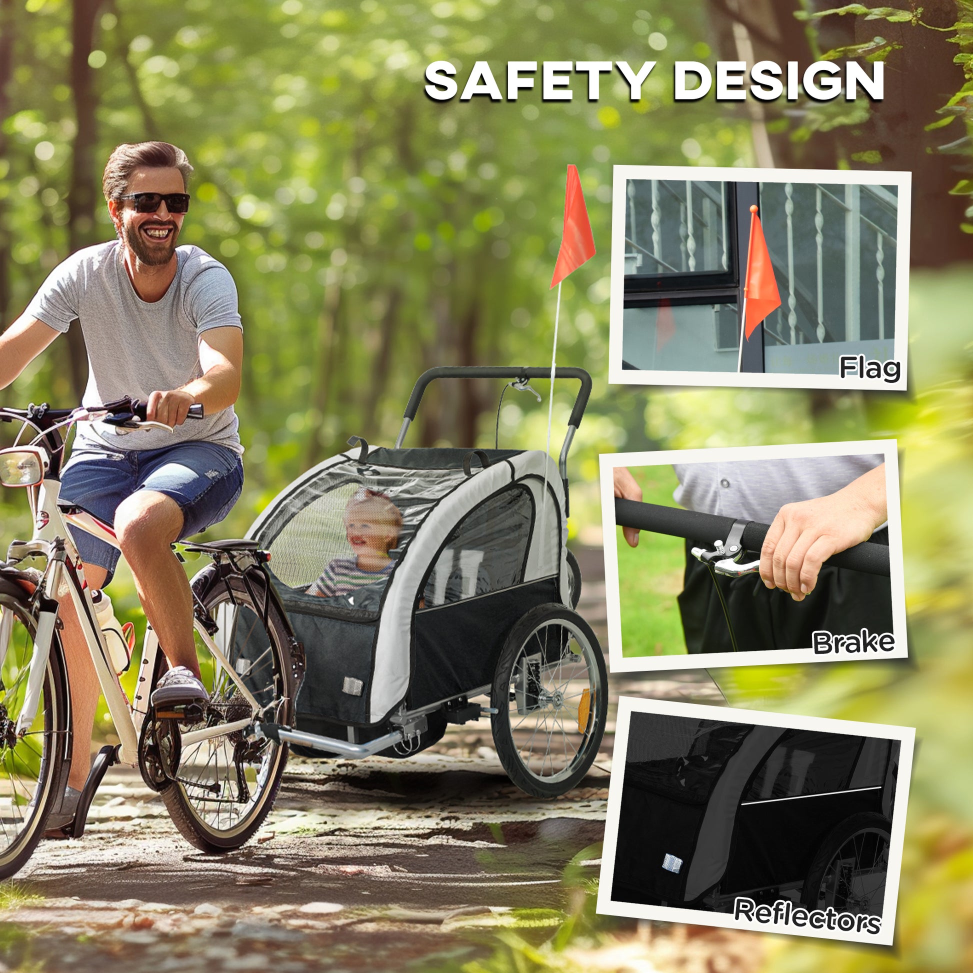 HOMCOM 2 Seat Bike Trailer with 5 Point Harness, Baby Bike Stroller with Safety Flag, Reflectors, for 18+ Months, Black