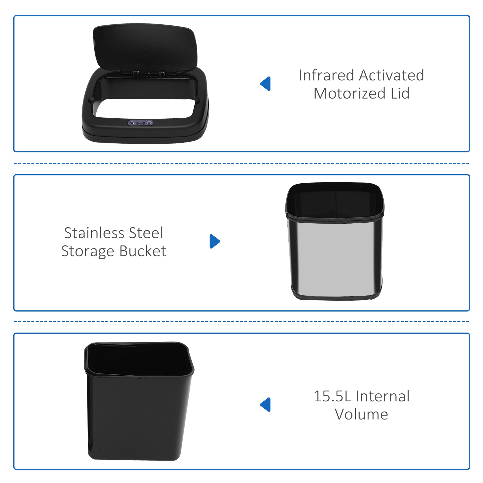 HOMCOM 20L LUXURY Automatic Sensor Dustbin Kitchen Waste Bin Rubbish Trashcan Auto Dustbin Stainless Steel with Bucket 33*25*42.5CM