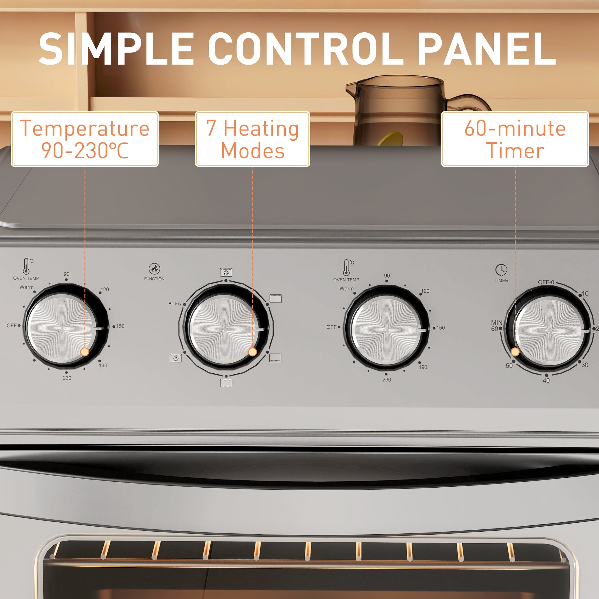 HOMCOM 24L Air Fryer Oven, Mini Oven, Oil Free Cooking, Grill, Roast, Bake, with Adjustable Temperature, Timer, Touch Screen, Dishwasher Safe, 1600W, Silver