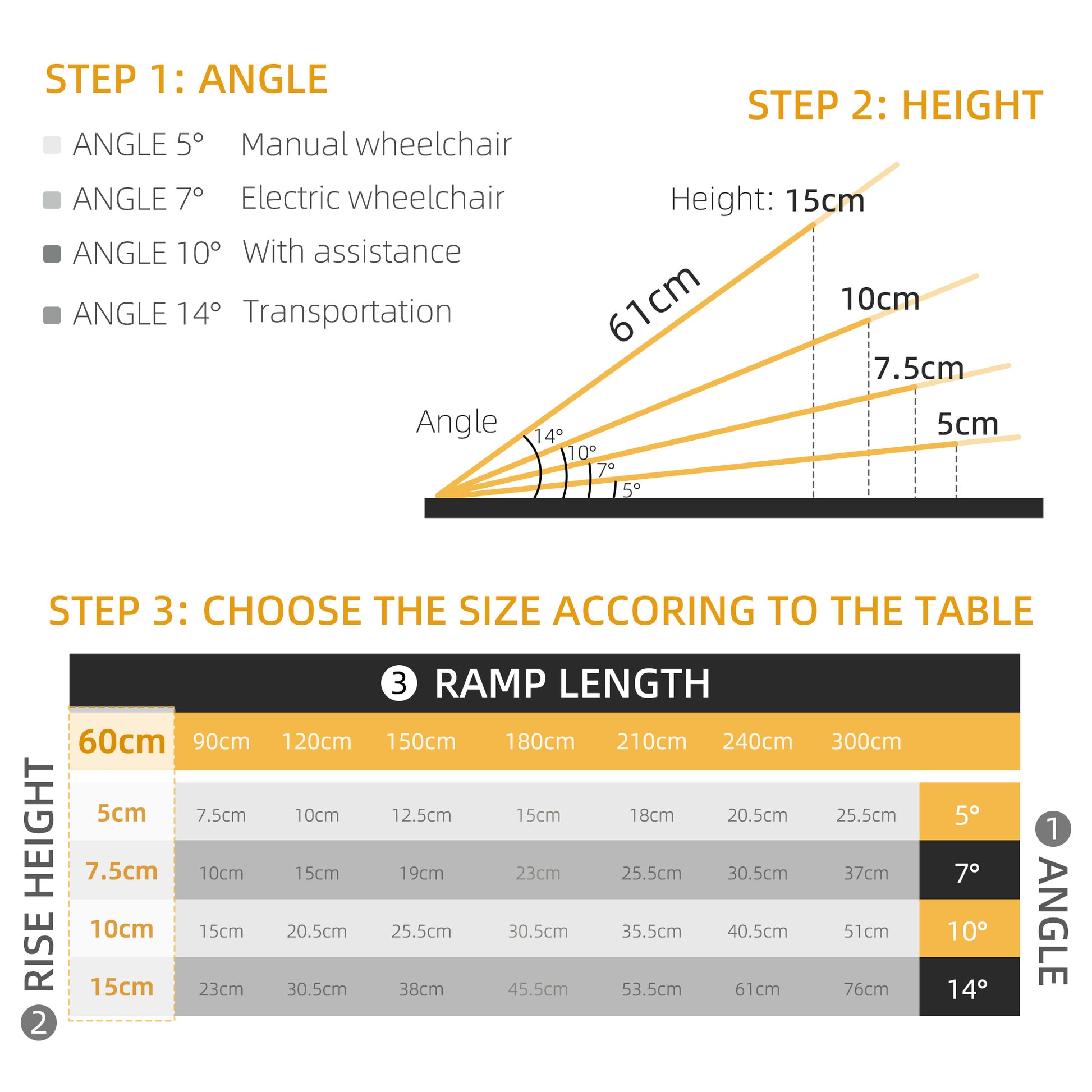 Get easier access to raised surfaces with this wheelchair ramp from HOMCOM. Covered with skidproof surface to prevent slipping, making it ideal for any weather condition. When not in use, the mobility scooter ramps can be easily folded, saving space and enabling storage in the vehicle or at home. The durable aluminium frame is anti-corrosive to last for years of usage. This door ramp can be used with wheelchairs, lawn mowers, scooters or any other heavy item that may have trouble with stairs.