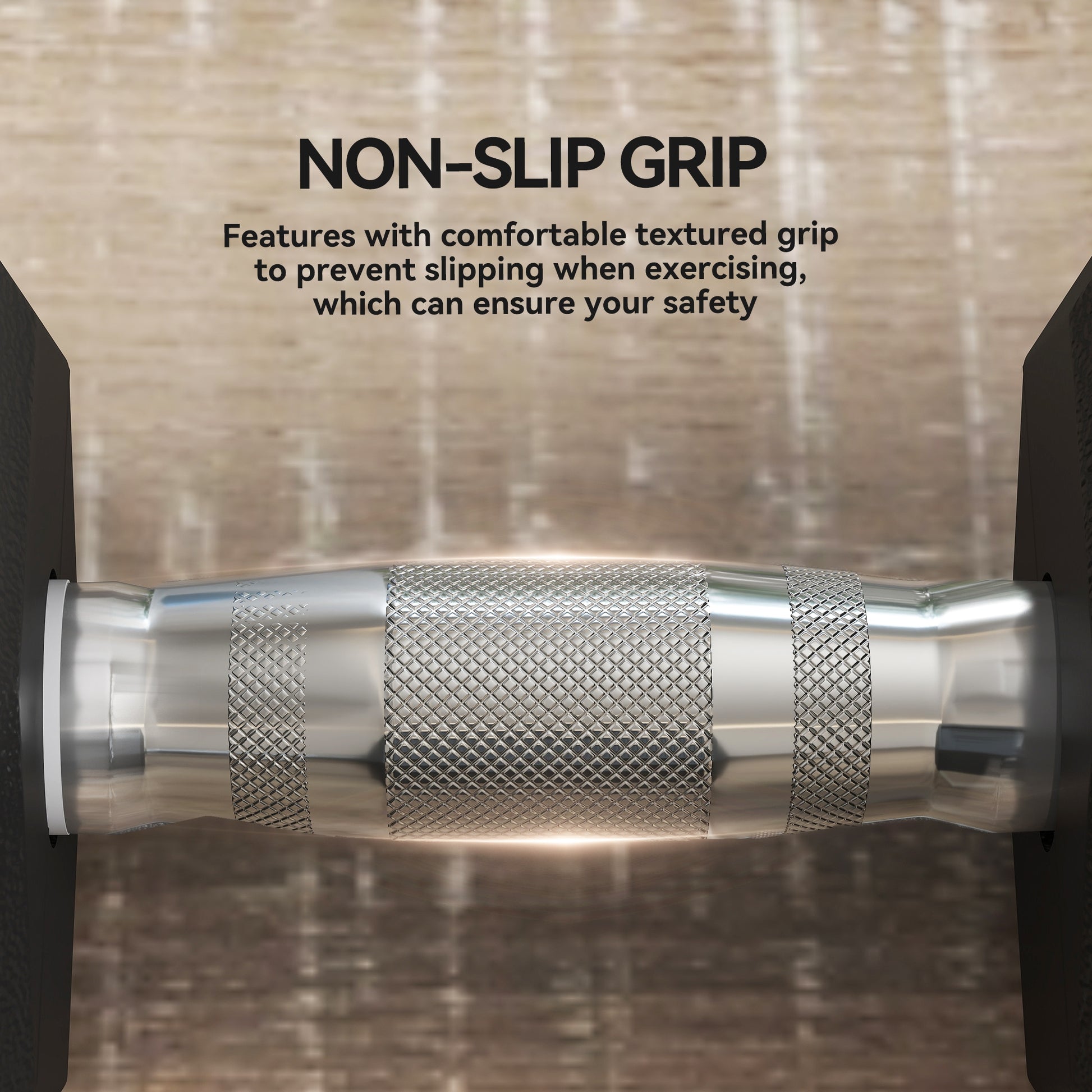 Strengthen your muscles in the most effective and easiest ways - go for this dumbbell set from HOMCOM. The 35kg weight is suitable for those accustomed to the heaviness only and can be used almost anywhere in the home and outdoors thanks to the small size. The frame is steel for a strong core and features knurl indents for grip. Both ends come in a weighted, hexagonal shape, so it doesn't roll away. The weight number is carved into the protective rubber cap for you to know which to use.