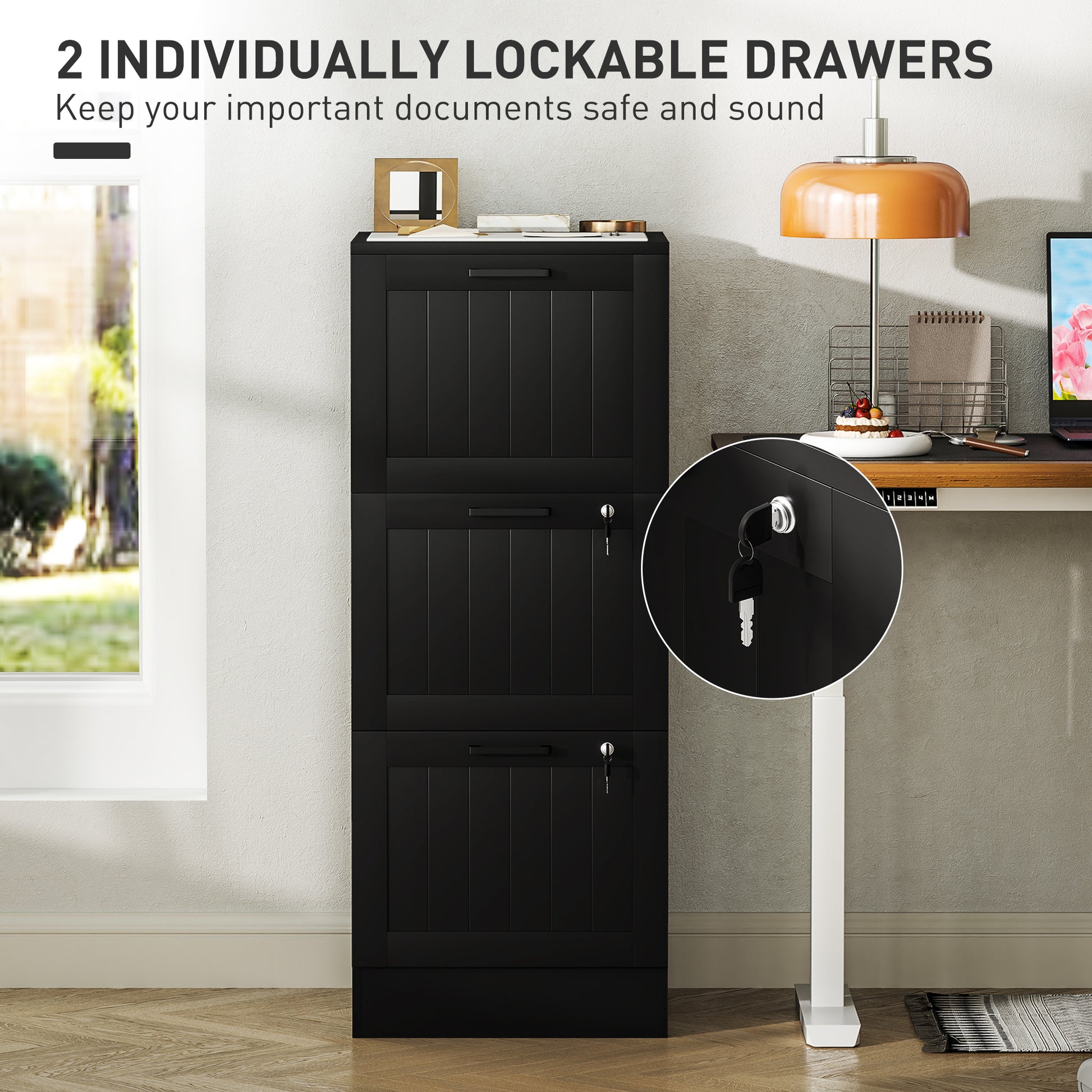 HOMCOM 3 Drawer Filing Cabinet with Lock, Office Storage Cabinet with Adjustable Hanging Bars for A4 Letter Size Files, Black