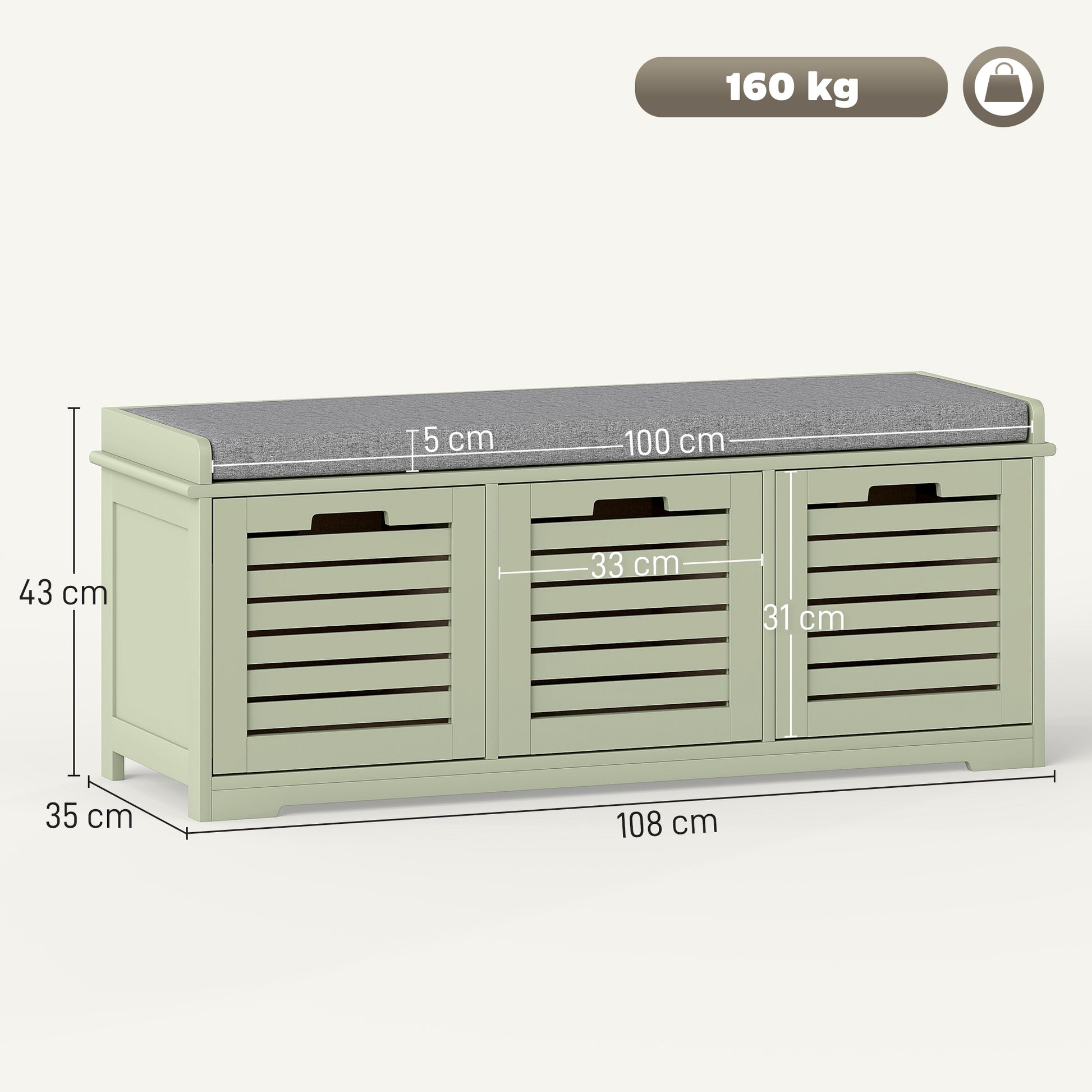 HOMCOM 3-Drawer Shoe Storage Bench - Green