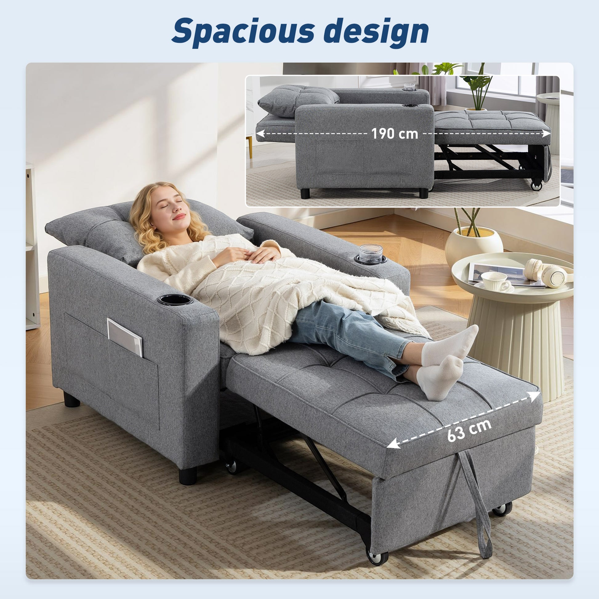 - Three-way design: Armchair, to recliner, to single bed. Use it how you want