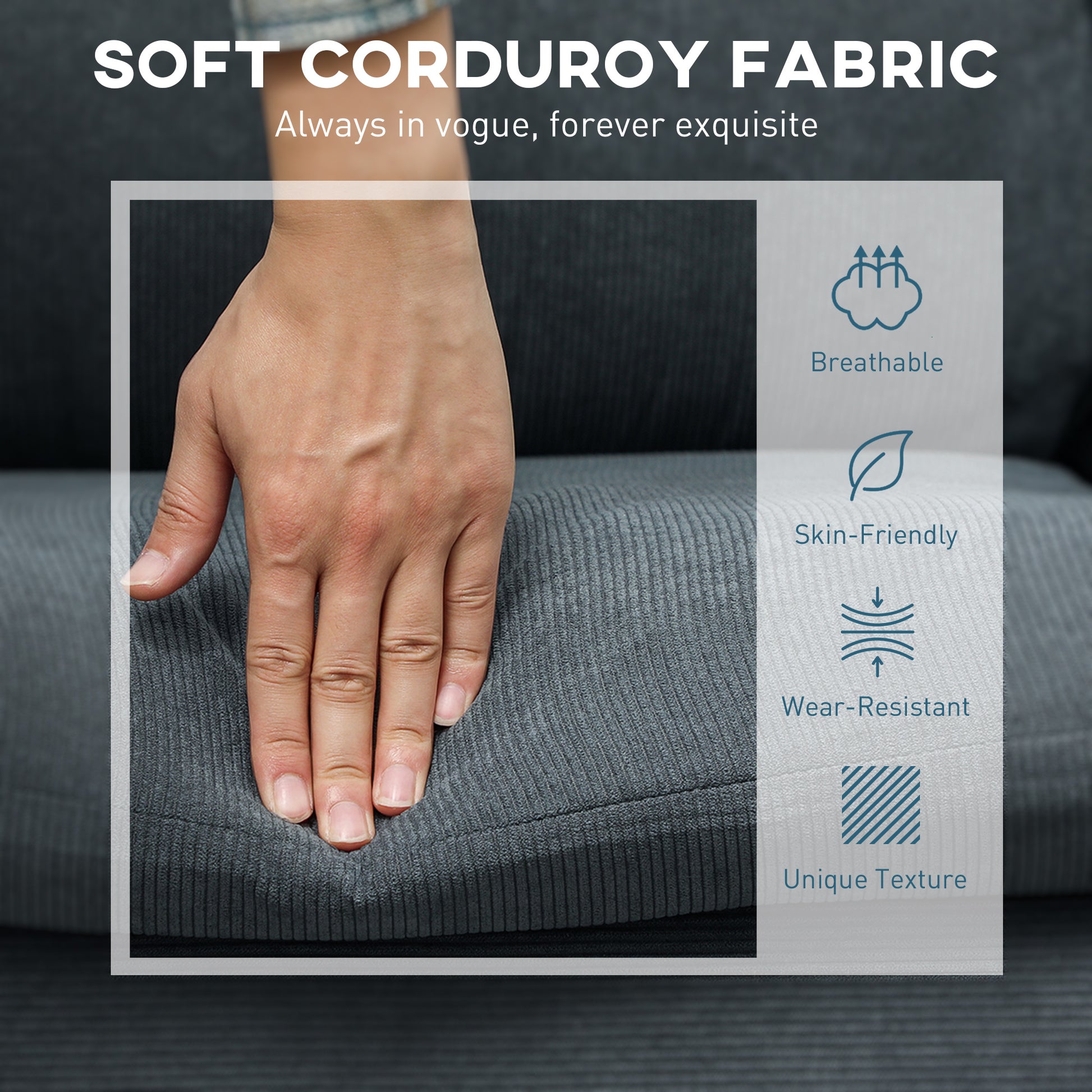 HOMCOM 3 Seater Sofa with Ottoman, 196cm Corduroy L-shaped Sofa Couch with Scatter Back, Reversible Chaise Lounge for Living Room, Home Office, Small Spaces, Charcoal Grey