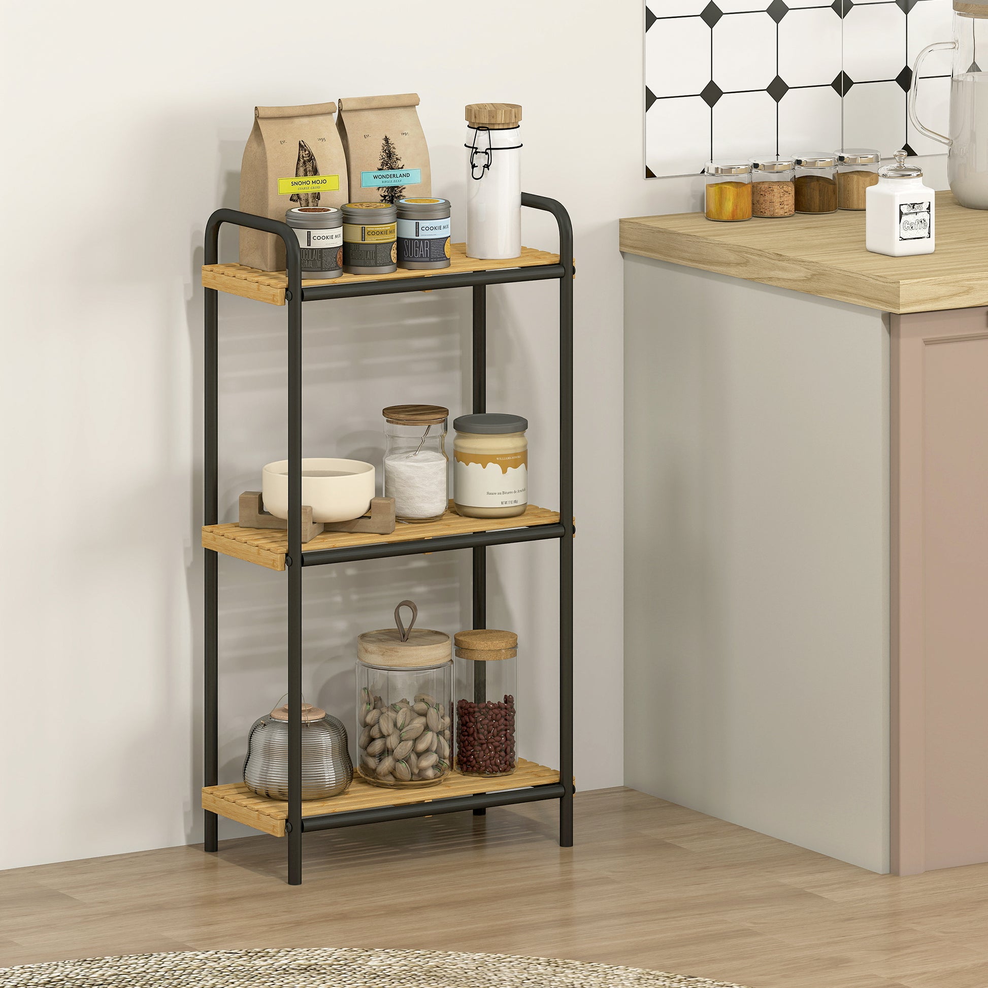 HOMCOM 3-Tier Bamboo Bathroom Storage Shelf, Freestanding Narrow Shelving Unit with Slatted Shelves for Kitchen Bathroom Living Room, 41.5 x 21.5 x 77.5 cm, Natural and Black