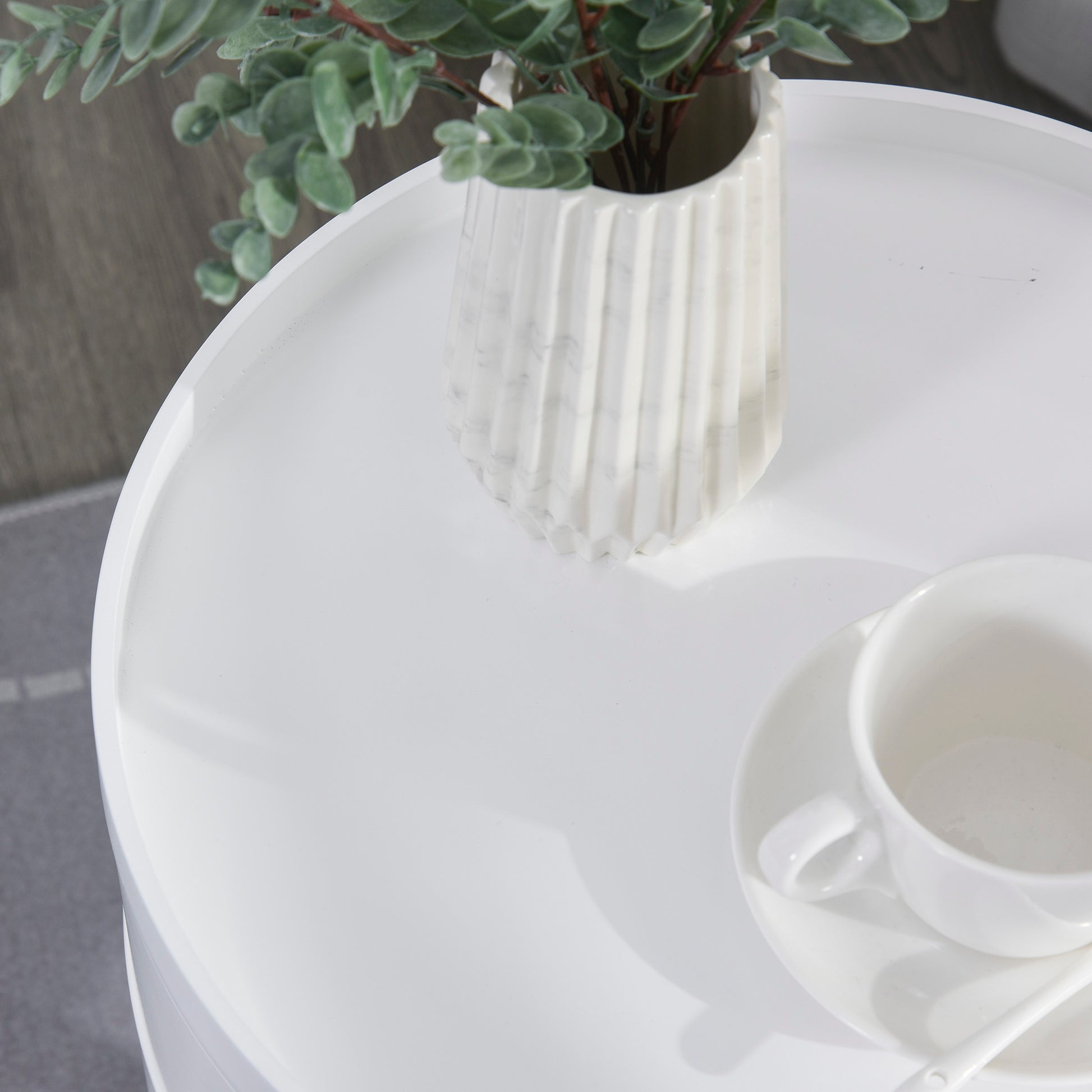 HOMCOM 3-Tier Coffee Table, Round End Table with 2 Hidden Compartments and Detachable Tray, Side Table with Storage for Living Room, Set of 2, White