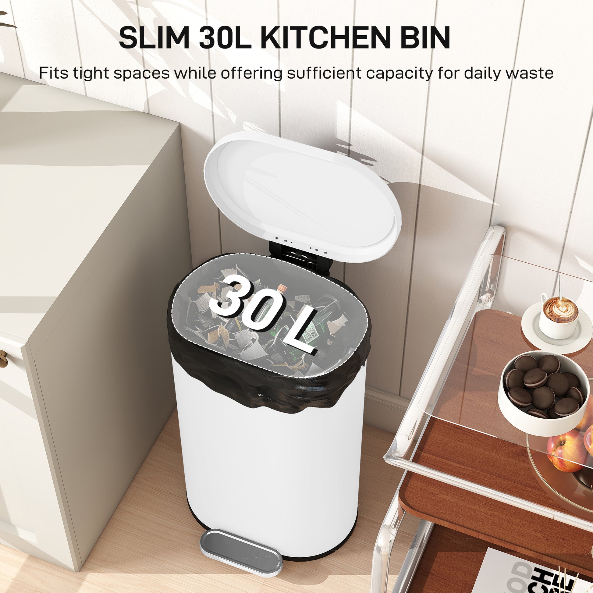 - Slim, space-saving 30L capacity. Plenty of room for shared use in kitchens, offices and other rooms